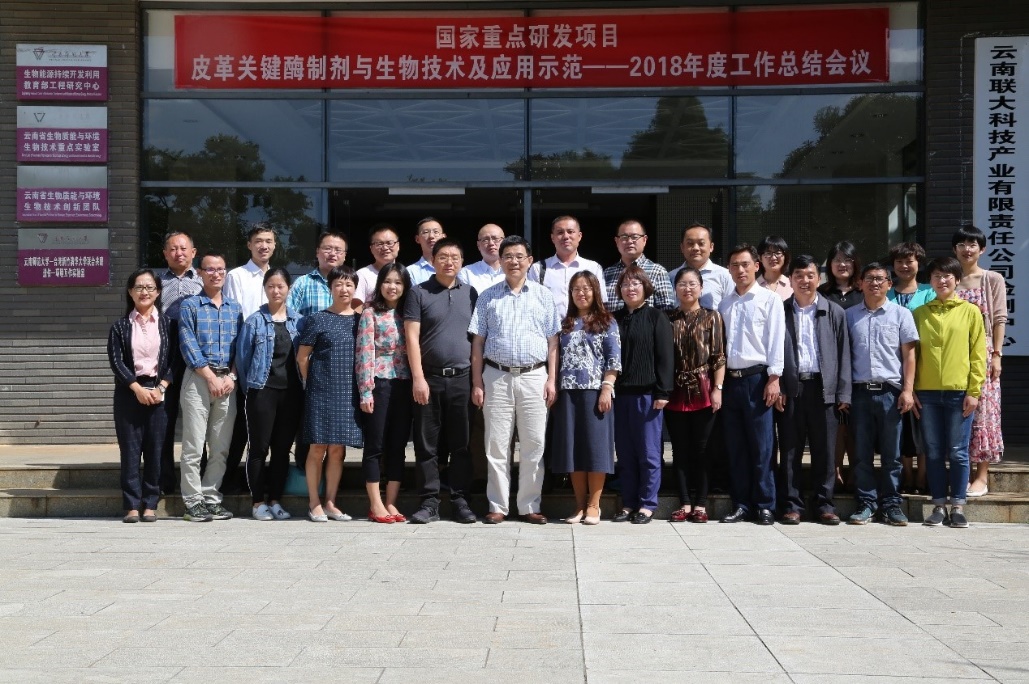 From August 18 to 19, 2018, the 2018 annual meeting of the national key research and development project "Key Enzyme Preparations and Biotechnology and Application Demonstration of Leather (2017YFB0308400)" undertaken by Sichuan University was successfully held at the Engineering Research Center of the Ministry of Education for Sustainable Development of Bioenergy in Chenggong Campus of Yunnan Normal University. Yongzhi Li, director of China Light Industry Federation, attended the meeting. The project, and sub-project leaders and financial experts attended the meeting, which are from Yunnan Normal University, Qilu University of Technology, Tianjin University of Science and Technology, Jiangnan University, Sichuan Dowell Technology Co., Ltd. etc.