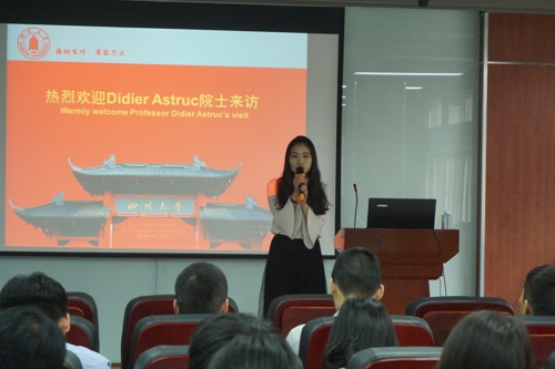 At 10:00 a.m. on April 10, Academician Didier Astruc, a senior foreign teacher of Sichuan University, gave an academic lecture entitled "Ferrocene Dendrimers" to graduate students in the 215 lecture hall of Leather Building, Wangjiang Campus. The lecture was presided over by Yang Li. Professor Youjie He and Professor Haibin Gu attended the lecture.
