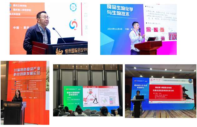 2024年11月2日-4日,由中国食品科技技术学会主办,四川大学、西南大学、四川省食品科学技术学会等10家高校单位共同承办的“中国食品科学技术学会第二十一届年会”在重庆市渝北区隆重召开。本届年会以“使命驱动下的食品科技与发展”为主题,围绕我国食品科技与产业发展的新变化、新需求、新任务,集结食品科技力量,凝聚行业新质之光,为川渝地区特色食品产业乃至我国食品产业高质量发展注入创新活力、贡献科技智慧。孙宝国、谢剑平、朱蓓薇、陈坚、钱锋、任发政、李培武、单杨、谢明勇、金征宇、薛长湖11位中国工程院院士及有关专家出席了大会。bw必威西汉姆联官网副院长迟原龙教授、四川大学先进酿造科技创新中心主任许正宏教授、bw必威西汉姆联官网皮革系副系主任吴重德教授、食品系副系主任任尧副教授、董怡副研究员、吴艳萍副研究员和卢云浩副研究员等多位师生出席了大会。
