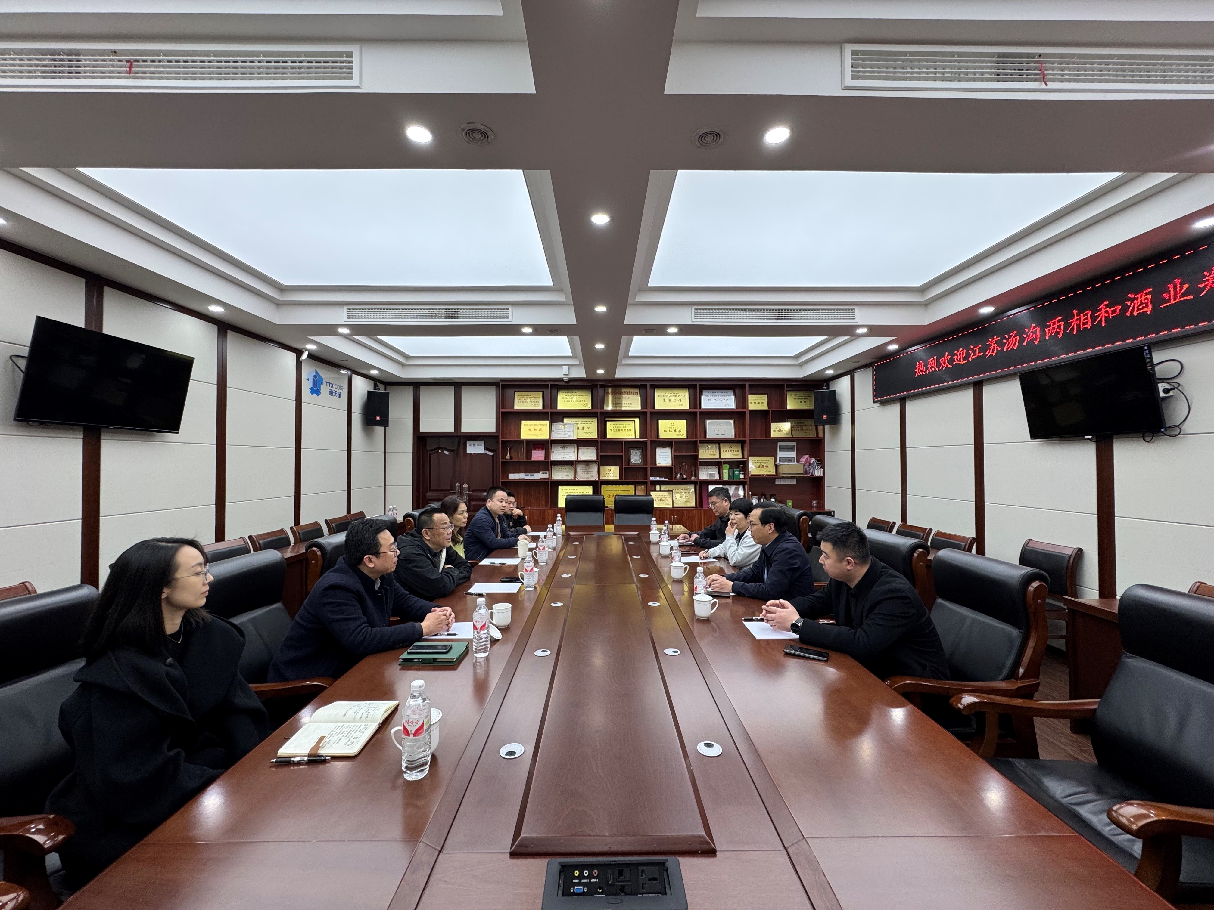 2025年3月24日,江苏汤沟两相和酒业有限公司(以下简称“汤沟酒业”)总经理郑军率队莅临bw必威西汉姆联官网进行参观交流,并与四川大学先进酿造科技创新中心主任许正宏教授、迟原龙教授等就产业合作、人才培养以及科研项目合作等问题展开深入交流,会议由迟原龙副院长主持。