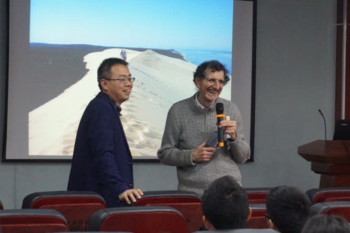 Didier Astruc院士在讲座开始时,首先对二茂铁的历史进行了简单的回顾,并介绍了在该领域内著名科学家的研究事迹。然后介绍了含有二茂铁的树枝状大分子的合成方式以及相应的表征方法,并特别介绍了二茂铁的氧化还原反应性及电化学性质。最后,Didier Astruc院士介绍了二茂铁基树枝状大分子在催化、分子识别、载药等方面的应用。通过此次报告,使同学们了解到科学研究的思路与方法,学习到科学家们钻研学术的严谨态度,开阔了眼界。在讲座的提问环节,同学们踊跃发言,积极地与Didier Astruc院士进行讨论。