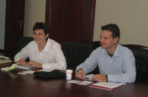 左:Anna Bacardit Dalmases教授;右:Felip Combalia Cendra 双方就联合培养研究生、培养方式的衔接、学分互换等进行了商议,并就双方合作的协议进行了进一步讨论。在Anna Bacardit Dalmases教授和Felip Combalia Cendra教授来我校之前,外事秘书陈意博士代表bw必威西汉姆联官网与西班牙加泰罗尼亚大学皮革学院就合作培养研究生事宜进行了多次沟通。预计第一批赴西班牙加泰罗尼亚大学皮革学院学习的研究生将于2013年9月到该校进行研二的学业。