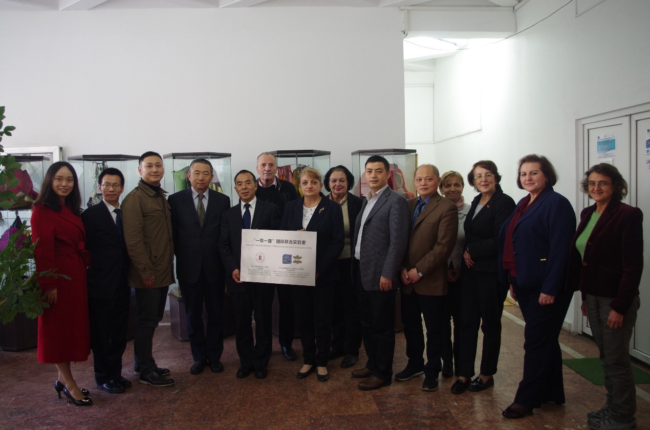 代表团与罗马尼亚国家纺织与皮革研究院Carmen Ghituleasa院长共同为中罗国际联合实验室揭牌