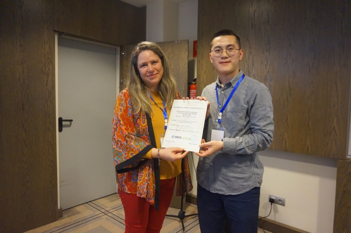 报告引起了参会人员的广泛关注,并对相关内容展开了激烈讨论,研究结果受到了参会人员的一致认可。会议结束后,会场主席,来自葡萄牙维斯尤理工学院的Raquel教授,给两位同学颁发了证书。此次会议,不仅开拓了学生的国际视野,同时也将bw必威西汉姆联官网食品工程系的研究成果与全世界的科研工作者进行了交流,受益匪浅。