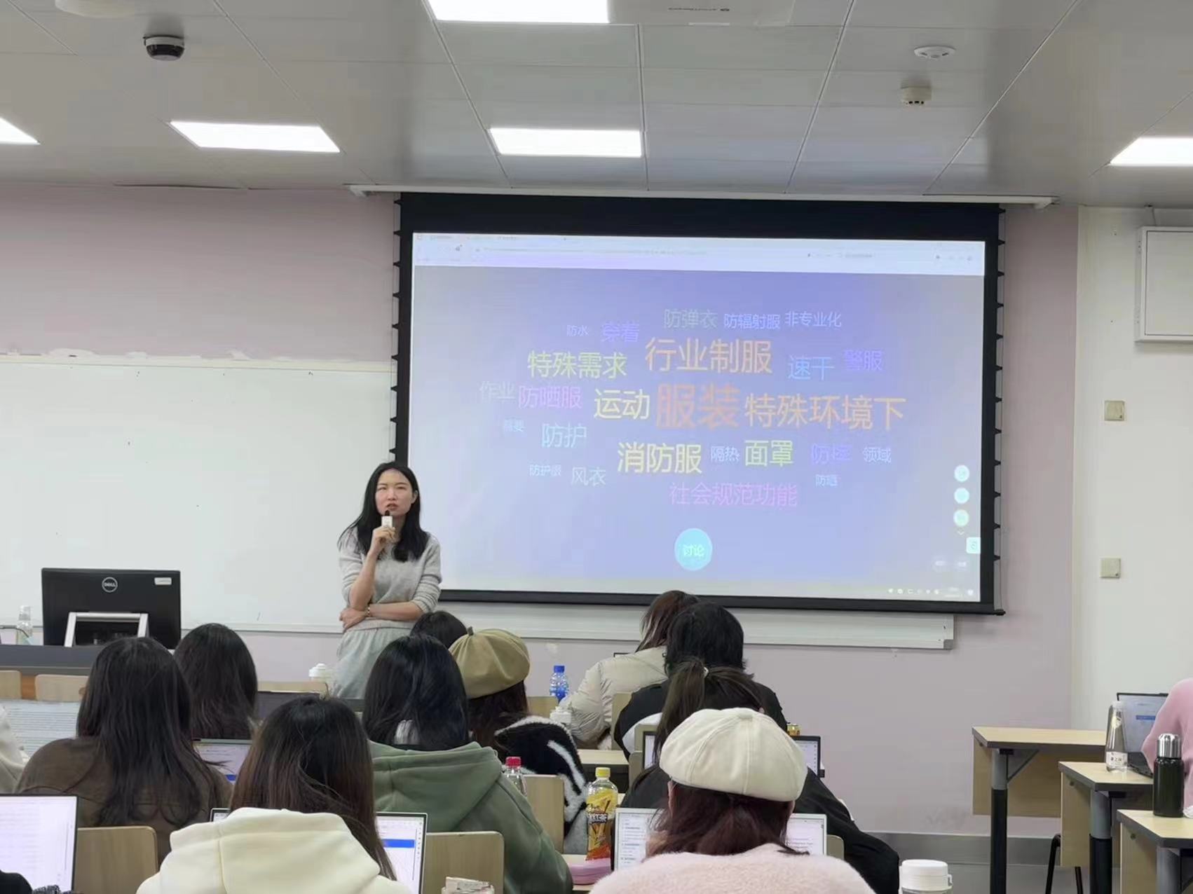 王圣洁老师介绍了“SCIE(ISI)”、“EI”等在内的英文数据库资源及相关搜索、翻译技术,同时对搜索引擎、文献管理软件及与服装专业相关的艺术类网络资源等方面的知识进行了补充阐述。在进行演示讲解之余,王圣洁老师请每位同学以“功能性服装面料”进行文献检索并给予现场答疑指导。