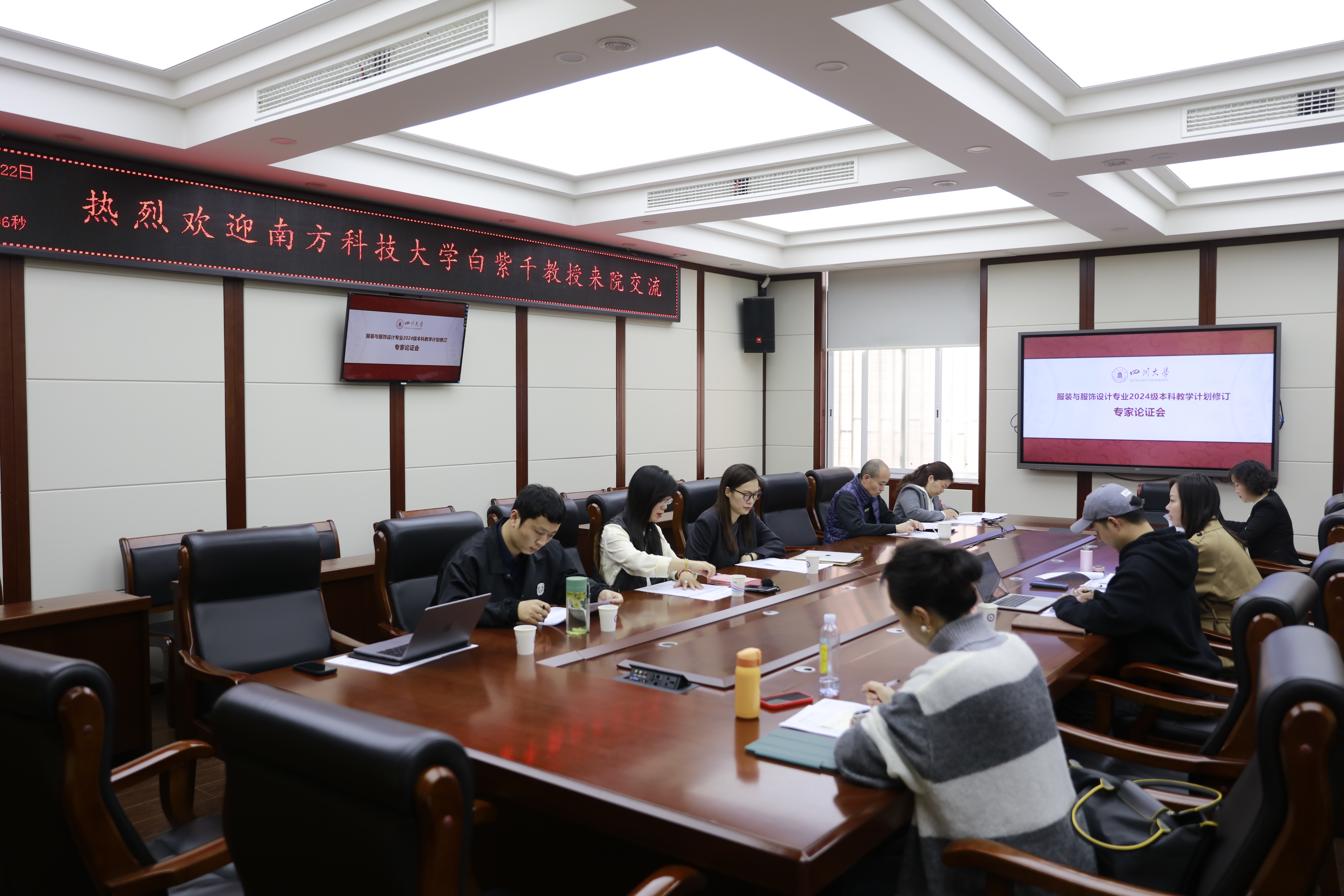 2024年3月22日下午,bw必威西汉姆联官网服装与服饰设计专业在四川大学望江校区纺工副楼205会议室举行了2024级本科教学计划修订专家论证会。服装与服饰设计专业教师代表参加了会议,南方科技大学助理教授白紫千老师受邀为论证专家,副系主任申鸿老师主持会议。