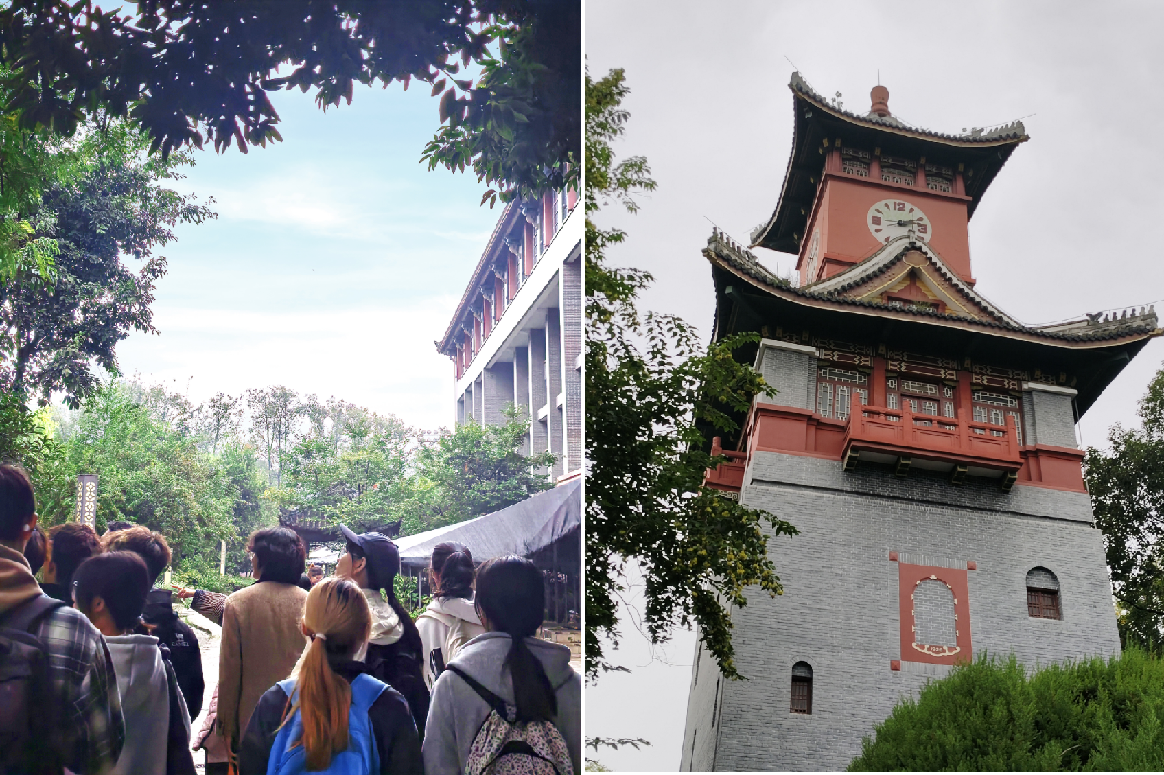 活动结束后,董老师又带领203班同学游览了华西校园。在华西药用植物园,同学们对各种药用植物充满了好奇,用“豆包”了解各种植物的药用功能;在华西图书馆、荷花池和标志性的钟楼前,也留下了203班同学的足迹。