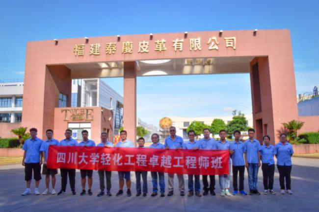 2019年11月,生物质与皮革工程系主任林炜教授、副主任程海明教授、教研室主任但年华副教授一行到福建漳浦皮革工业园,对几家皮革企业的软硬件设施进行现场考察,确定在漳洲香洲皮革有限公司建立“实践教学基地”,将该工业园与河北锚营制革园区一起作为2020年卓越工程班的实习基地。