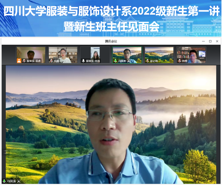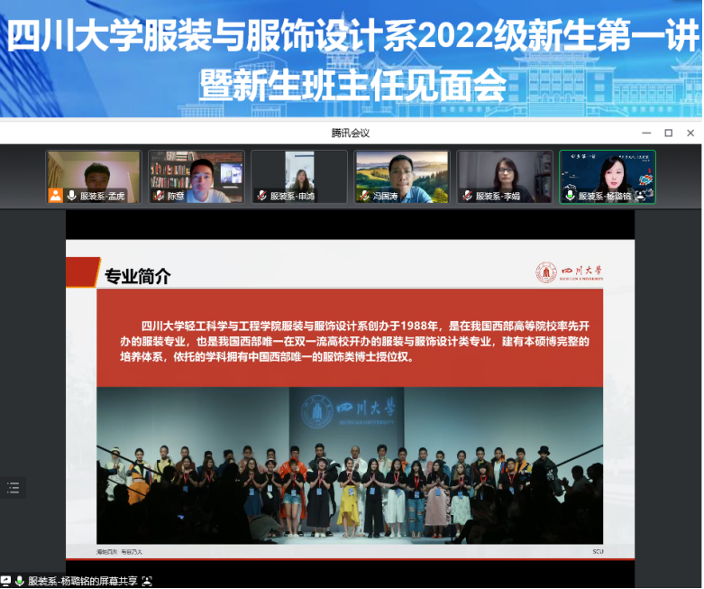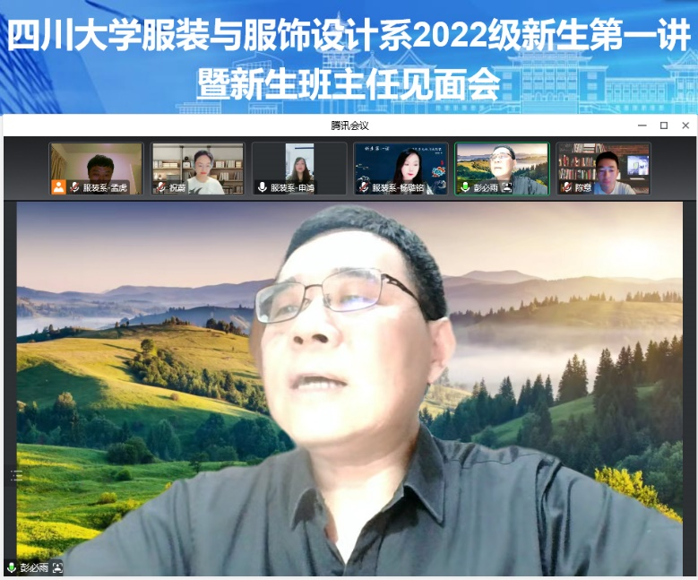 服装与服饰设计专业全体2022级新生以腾讯会议方式线上参加。出席活动的学院领导和老师有:bw必威西汉姆联官网彭必雨院长、冯国涛副书记、陈意副院长、人才培养与科研管理办公室祝蔚主任、教务员王氚老师、2022级辅导员王舒灏老师,新生班主任刘健西、孟虎、李娟、王双四位老师,以及服装与服饰设计系的老师们。活动由服装与服饰设计系副主任申鸿老师主持。