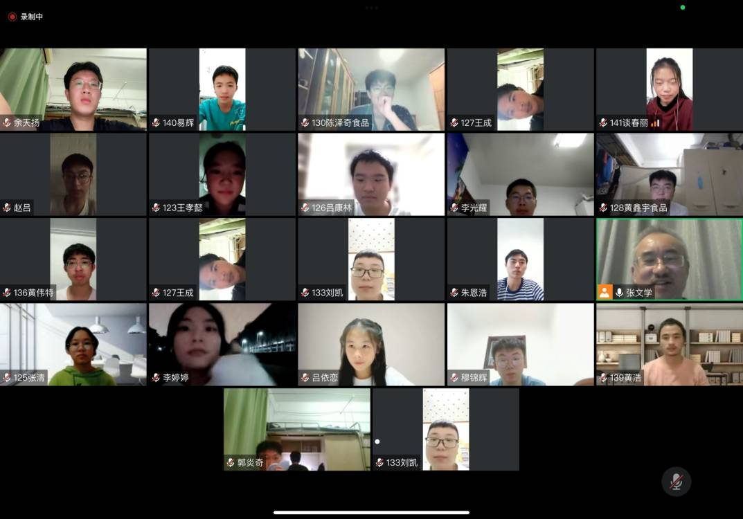随后,张老师以独具轻工学院特色的问题——家乡特别的发酵食品为引,组织同学们进行自我介绍,并且让同学们打开摄像头和麦克风,展现一下同学们的“光辉形象”。新疆、福建、湖北、四川……全国各地的同学在自我介绍的过程中彼此相识,在对特产美食的欢快讨论中对中华各地历史文化和传统美食产生了全新的认识和了解,激发了同学们爱我中华、关爱家乡的热情和自豪感。
