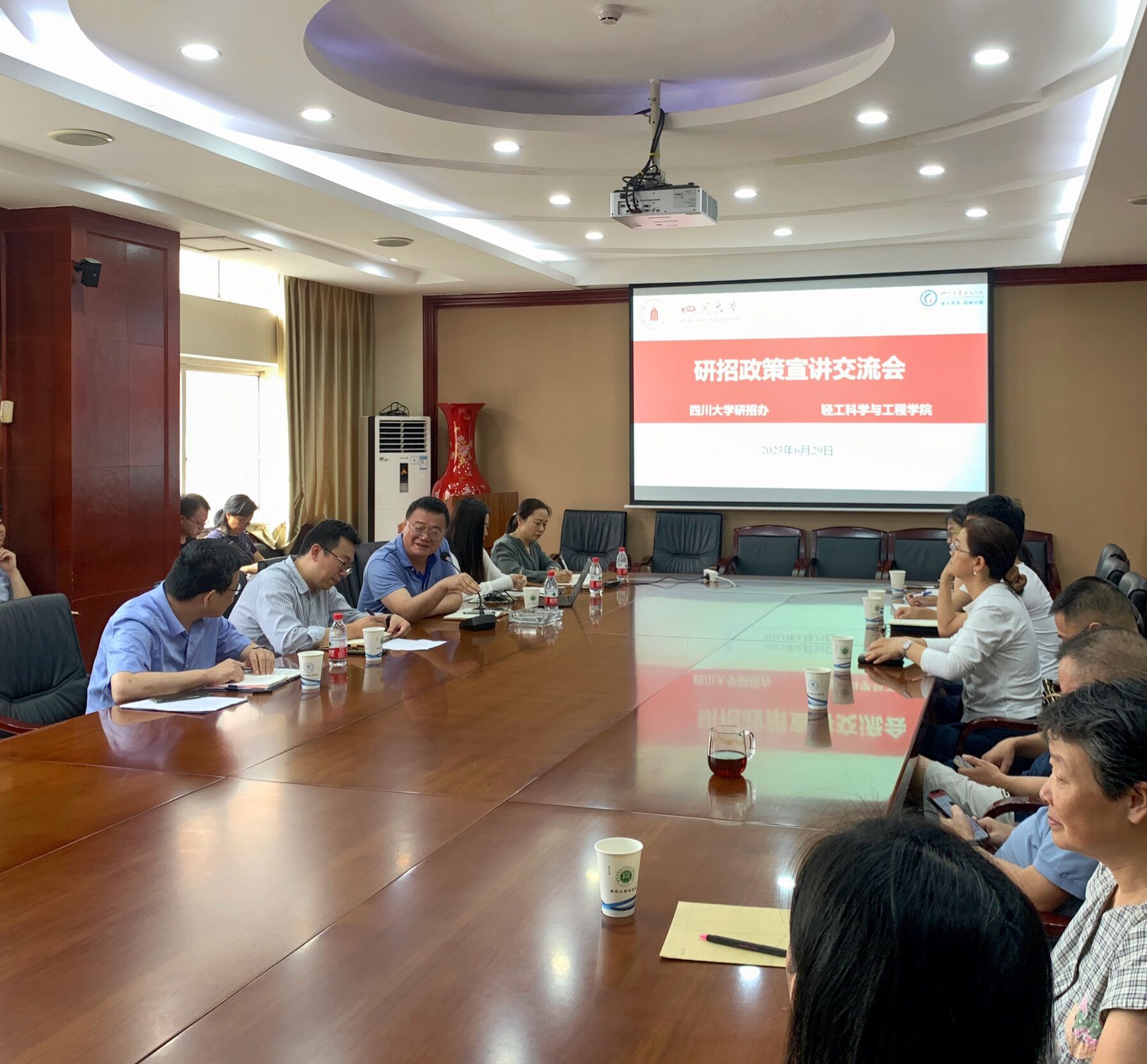 2023年6月29日下午,bw必威西汉姆联官网邀请研究生院招办刘猛主任在学院会议室举行了研究生招生政策宣讲交流会。轻工学院彭必雨院长、冯国涛副书记、迟原龙副院长、廖学品教授、研究生院招生办老师、学院硕博导和其他教学科研岗老师参加了会议。