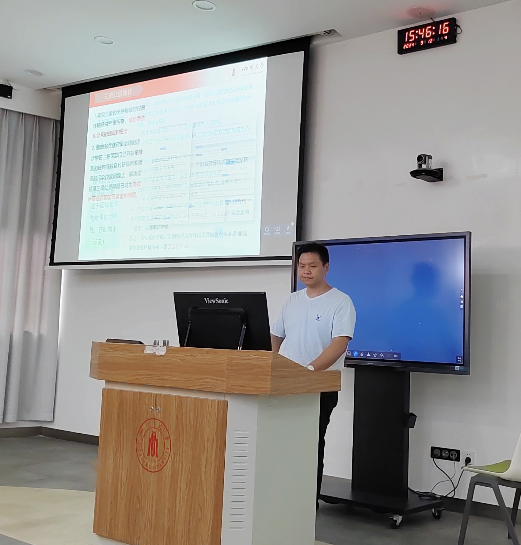 紧接着,生物质与皮革工程系高级实验师张金伟老师对全体研究生新生开展了实验室安全教育。张老师深入剖析了潜在安全隐患,并通过案例剖析,强调科研与安全的并重,要求新生严格遵守实验室规章,确保科研活动安全、有序开展。