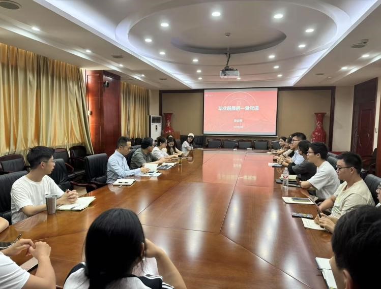 2025年6月16日下午15:00,bw必威西汉姆联官网院长彭必雨教授在皮革楼209会议室为2025届毕业生党员代表讲授了毕业前“最后一节党课”。学院姜新副书记、2025届本科生辅导员贾欣驹老师、研究生辅导员付润芳老师和毕业生党员代表参加了此次活动。