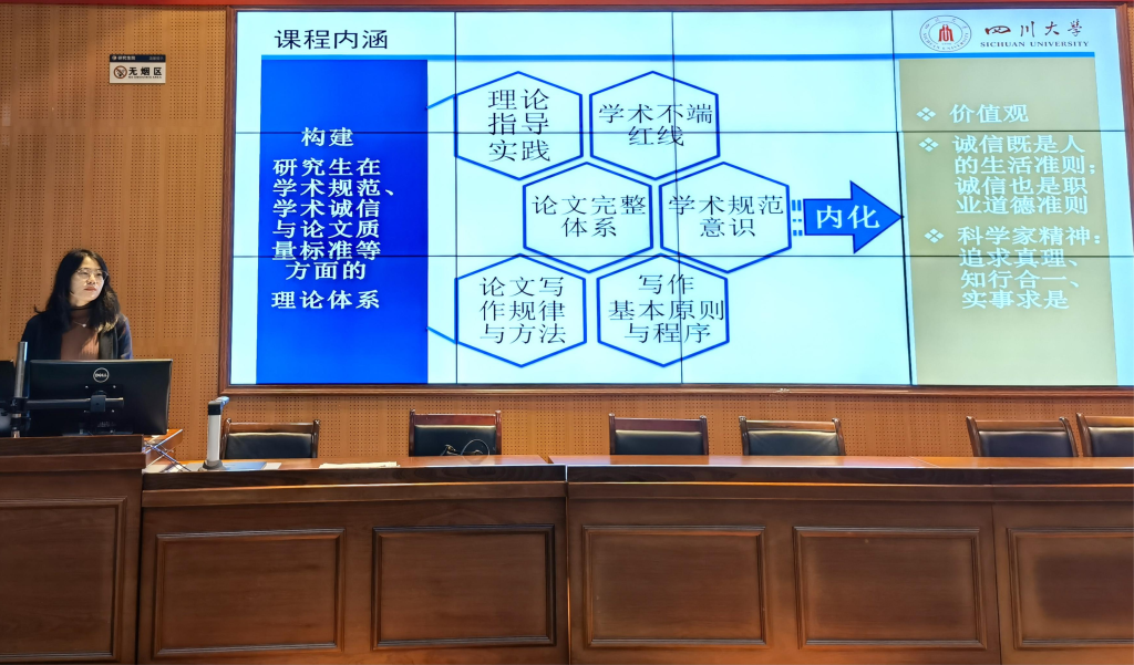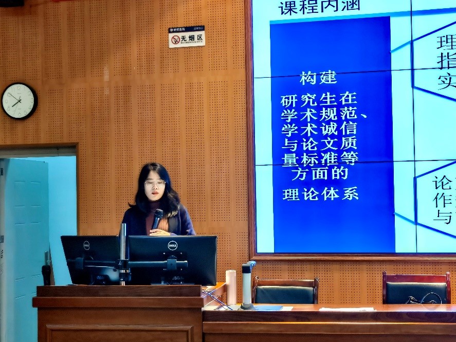 为贯彻落实《关于进一步规范和加强研究生培养管理的通知》、《四川大学关于加强学术诚信体系建设的实施办法》和《四川大学进一步加强研究生学术道德与学风建设的实施方案》文件要求,积极响应《关于开展四川大学诚信教育教学课件展示及优秀主讲教师评选活动的通知》文件要求。2021112日晚19:30,尚娇娇老师于研究生院2101讲授了《学术规范与研究生论文写作指导》课程,现场共有百余名硕士研究生和博士研究生进行学习。