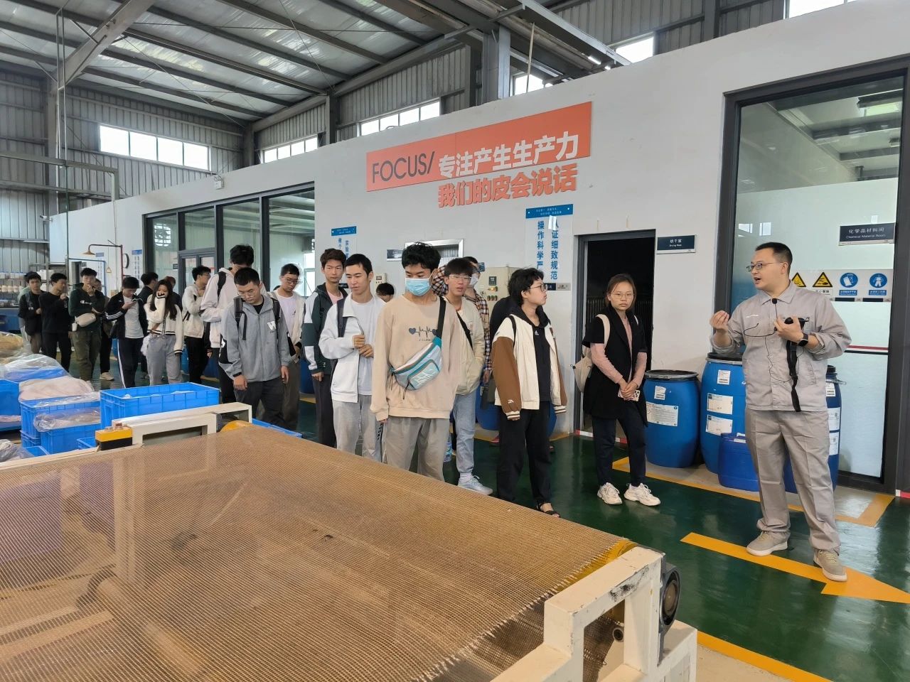 为加强2023级本科生职业生涯规划与专业教育指导,2023年11月4日,学院组织2023级工科试验班(先进低碳材料)专业开展了“共话皮革梦 走进德赛尔”为主题的专业认知实习活动。在学院院长彭必雨教授、学院党委冯国涛副书记、2023级班主任代表张旭老师,辅导员王舒灏老师、余昕玲老师、李有真老师的组织带领下,2023级工科试验班(先进低碳材料专业)本科生以及部分高年级同学一行赴四川德赛尔新材料科技有限公司进行交流学习。