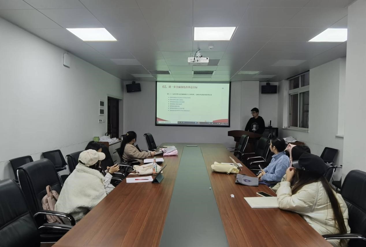 首先,党支部副书记潘磊同志领学,从党的二十届三中全会的召开背景、进一步全面深化改革时代背景、进一步全面深化改革总目标、聚焦建设社会主义文化强国、和进一步全面深化改革贯彻六条原则几个反面带领大家学习二十届三中全会。帮助大家建立起对二十届三中全会的基本认识框架,为深入学习奠定基础。