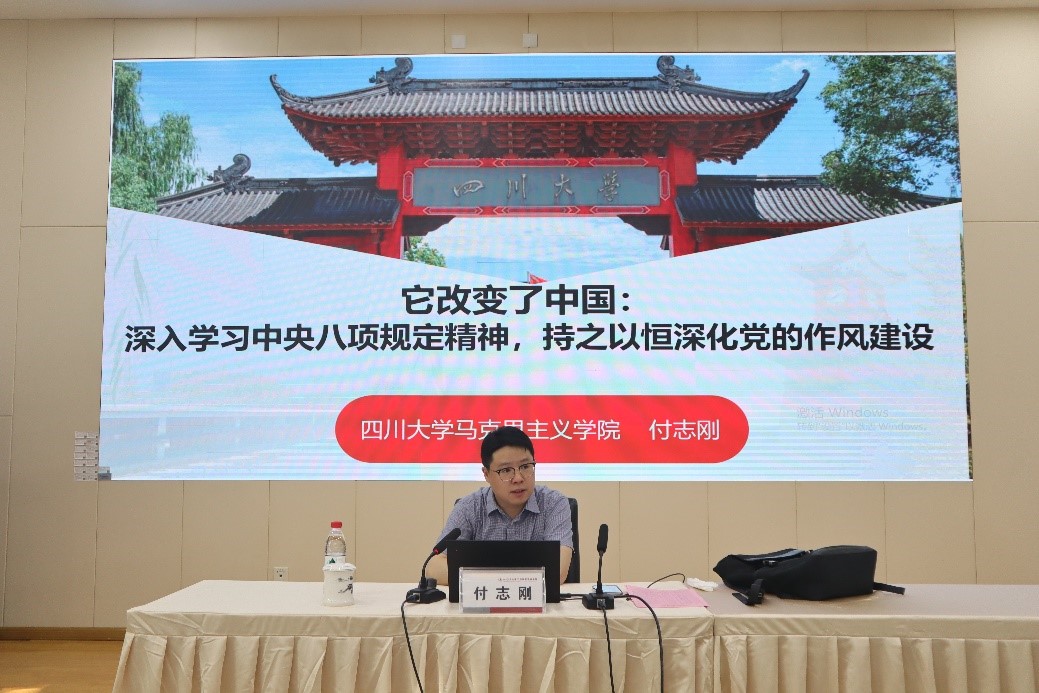 四川大学马克思主义学院付志刚教授围绕“中央八项规定精神与党的作风建设”进行专题授课,深入浅出地讲解了作风建设的重要意义和实践要求,强调要以典型案例开展学习教育,推进作风建设常态化长效化。