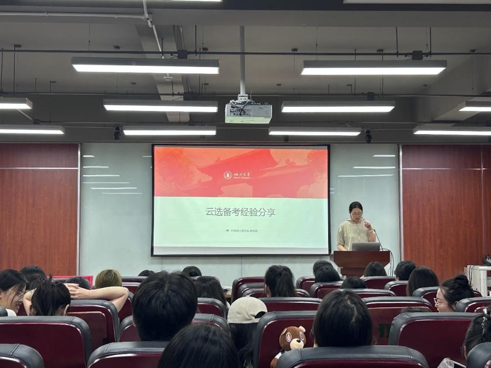 首先是成功获得本校硕博连读资格的周泱妤对申请博士的经验进行了分享。她从博士入学途径、申请制度、申请准备、面试经验、注意事项等六个方面,为学弟学妹们详细介绍了申请博士的重要事项。随后,成功申请海外博士的李玲从信息获取开始,讲述了院校选择、申请材料、申请流程和一些申请的注意事项,细致地讲述了申请海外博士的流程,并针对面试、简历、研究计划、奖学金申请的要点进行了分享。