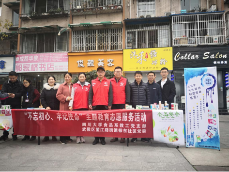 为深入贯彻“不忘初心、牢记使命”主题教育精神,以实际行动践行初心和使命,2019年11月27上午,食品教工党支部联合武侯区望江路街道棕东社区党委开展了一次以“不忘初心、牢记使命”为主题的志愿服务活动。本次活动旨在普及食品安全科学知识,促进民众踊跃参与食品安全共建、共享和共治,切实保障人民群众“舌尖上的安全”。