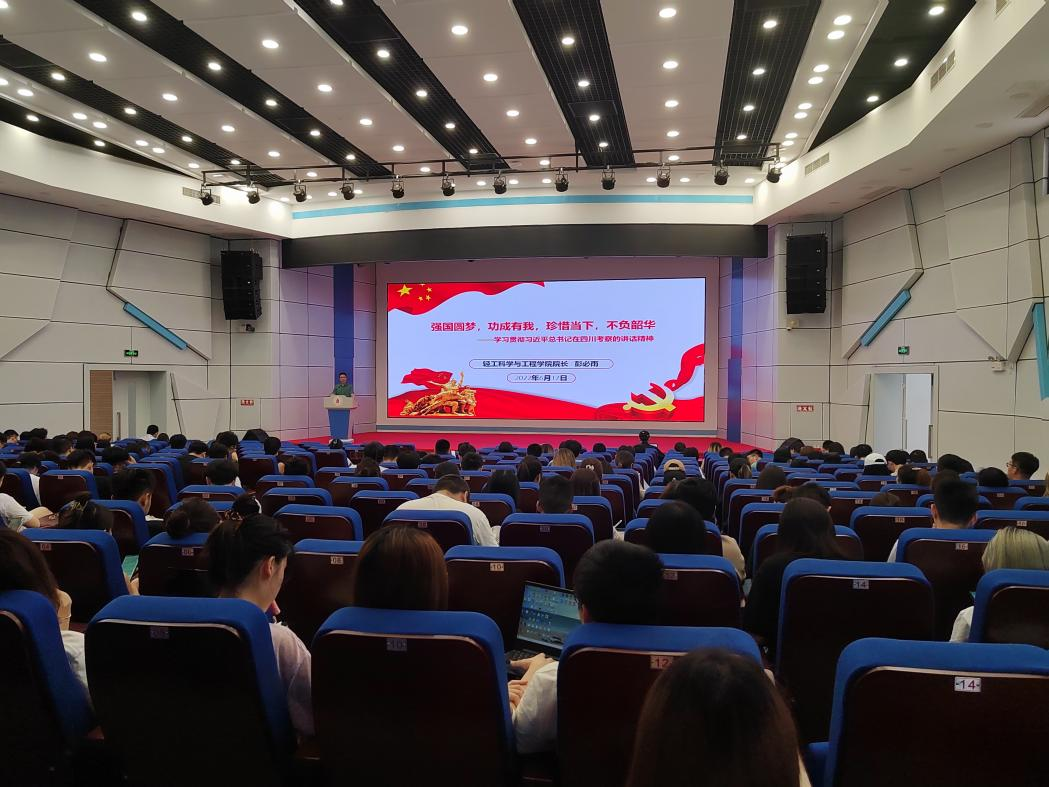 紧接着,彭必雨院长带领同学们一起回顾了党的十九大以来习近平总书记对四川两次考察的主要内容,并以“强起来”为关键词解读了习总书记今年6月的考察重点。彭院长从粮食安全保障措施要强、文化自信文化要强、科技创新科技要强、青年成长要强等四个维度,结合四川大学学科发展方向、育人理念以及学院专业特色等方面,鼓励青年学子们脚踏实地,在实践中一步步成长起来、一步步强大起来。