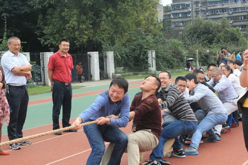 2015年10月9日,轻纺与食品学院15名教职工参加了2015年四川大学教职工拔河比赛。全校38支队伍参加了此次比赛,分为4个小组,比赛采用淘汰制。