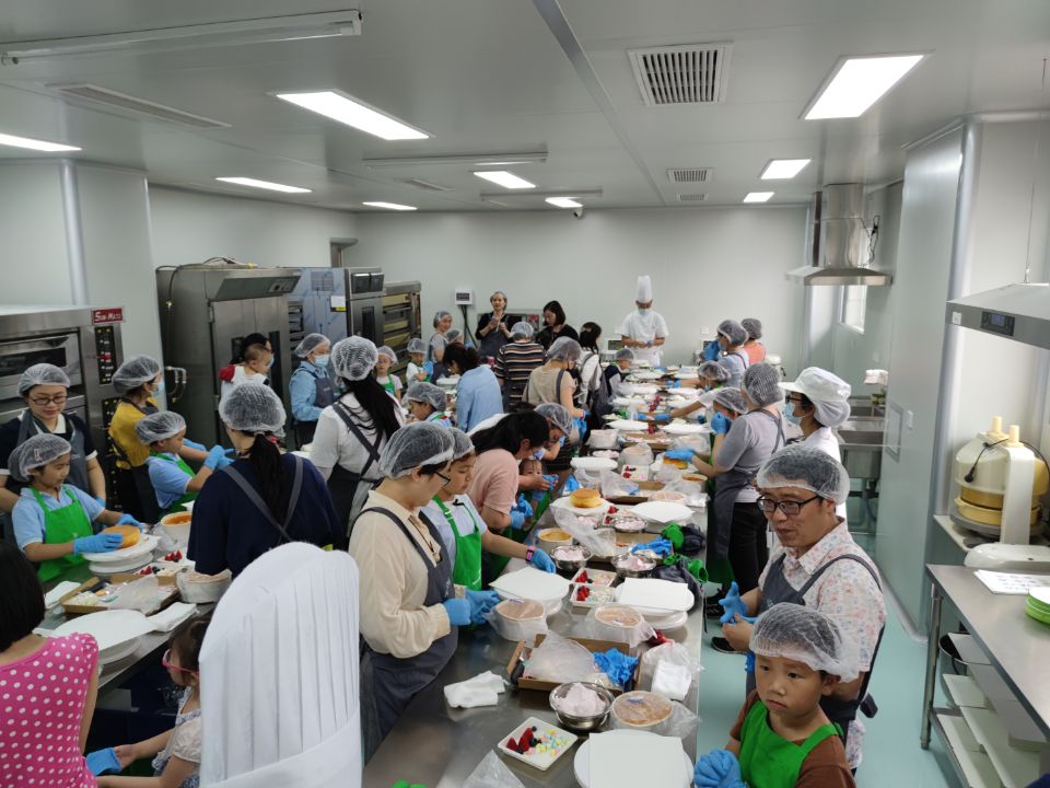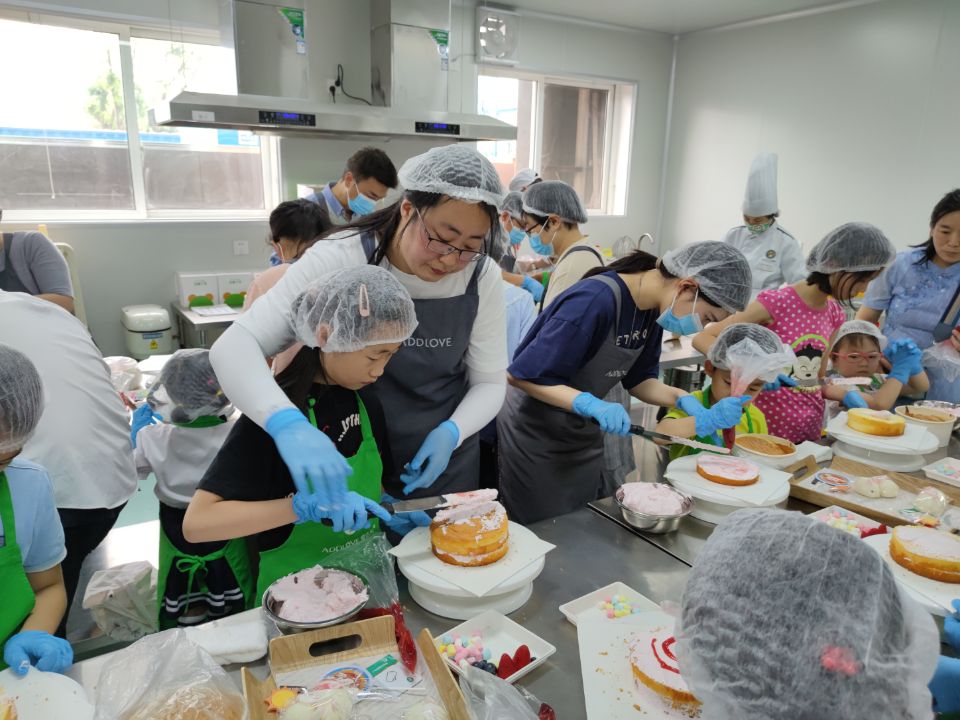 制作现场热闹非凡,弥漫着浓浓的甜蜜和快乐。在面点老师的指导和示范下,孩子们和家长一起大展身手,发挥想象在蛋糕胚上绘出美丽的奶油图案,用水果来点缀蛋糕出缤纷多彩的造型,享受节日温馨愉悦的亲子时光。