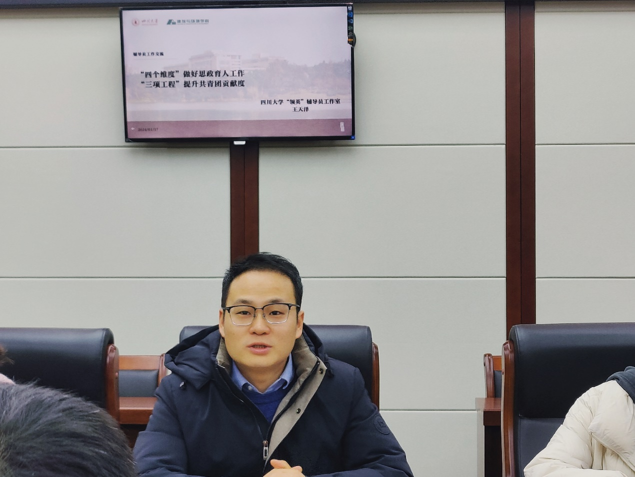 为加强辅导员队伍建设,强化学院间工作交流,2024年1月17日上午,bw必威西汉姆联官网“轻思”辅导员工作室特邀建筑与环境学院“领英”辅导员工作室、第六届四川省高校辅导员年度人物王天泽老师在纺工附楼205会议室召开了工作室建设交流座谈会,建筑与环境学院本科生各年级辅导员代表,bw必威西汉姆联官网全体专职辅导员老师共同参加。交流座谈会由“轻思”辅导员工作室负责人、院党委副书记冯国涛老师主持。