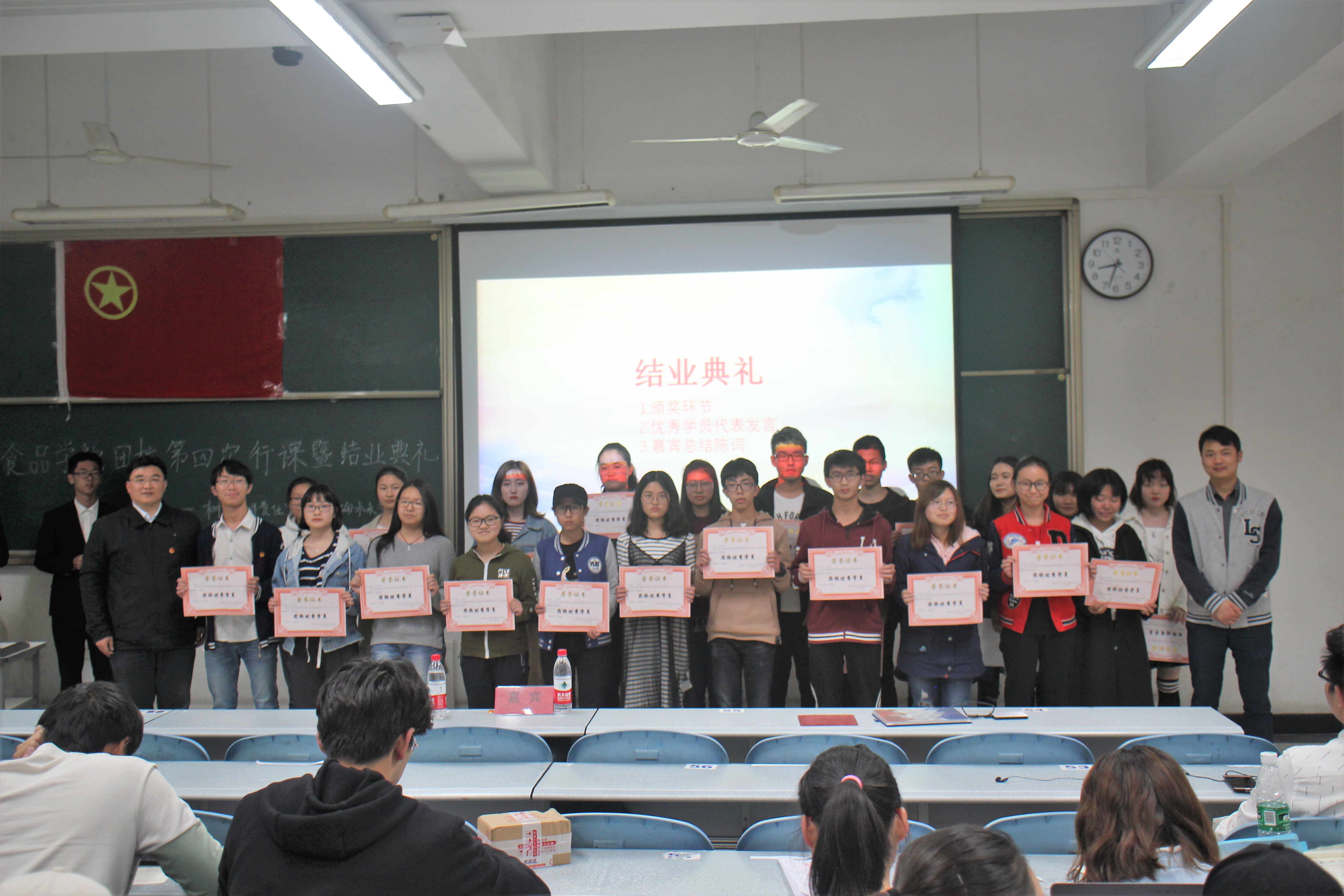 本次行课结束,也意味着2017—2018学年学院团校圆满落幕。在结业典礼上,刘晓虎书记和向星烨老师为本次团校中表现优异的23位学员颁发了优秀学员奖状。刘晓虎书记在最后的发言中高度肯定了团校在团员青年成长中发挥的重要作用,对团员青年在团校和学习生活中表现出来的活力和精神面貌表示欣慰。本次团校在同学们热烈的掌声中圆满结束!