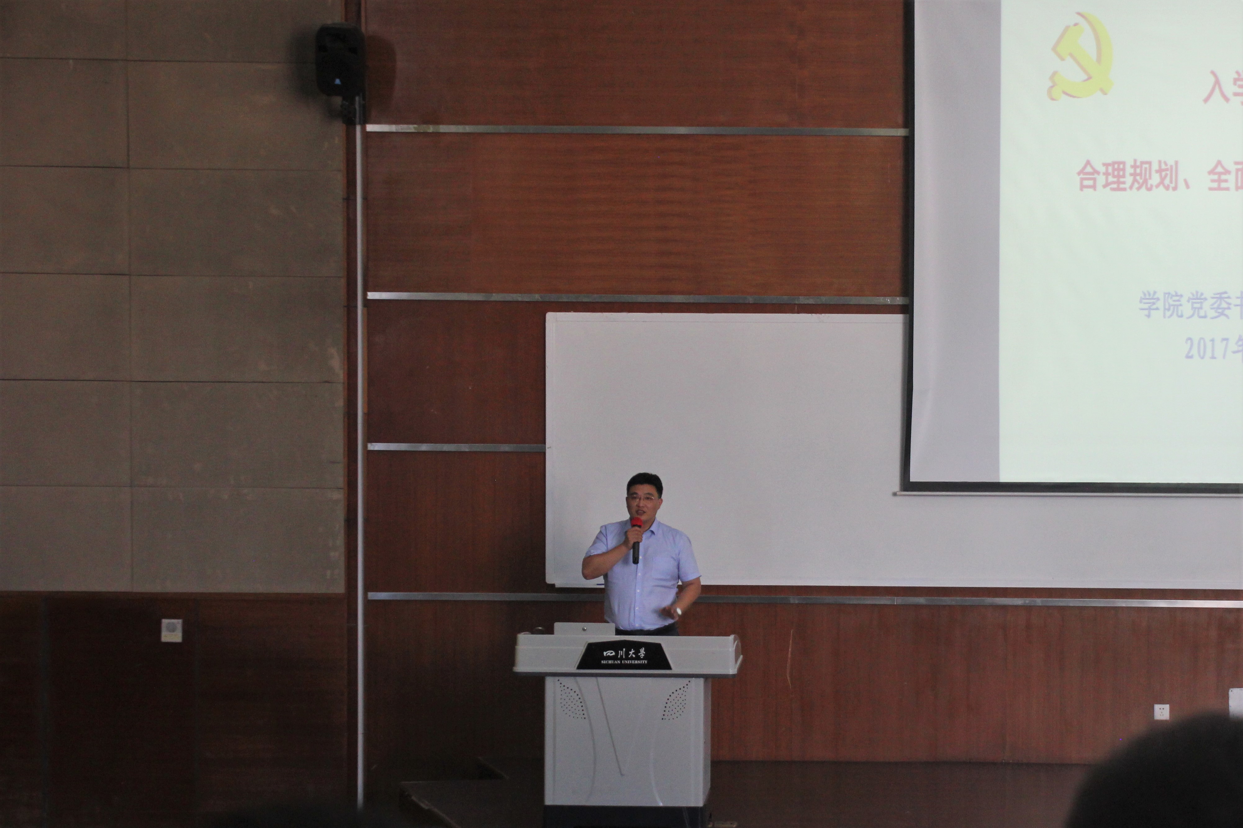 2017年9月11日,轻纺与食品学院2017级本科新生开学典礼暨入学教育大会在四川大学江安校区综合楼C407顺利举行。党委书记刘晓虎副教授,院长何有节教授,副院长兰建武教授,副院长何强教授,院长助理、纺织与服装工程系副系主任郭荣辉副教授,纺织与服装工程系副系主任申鸿副教授,教师代表王海波副教授,教导员吕振生老师,学生科科长冯国涛老师,院团委书记苏德强老师,17级辅导员向星烨老师、李杨老师以及全体2017级本科新生参加了本次活动。开学典礼由刘晓虎书记主持。