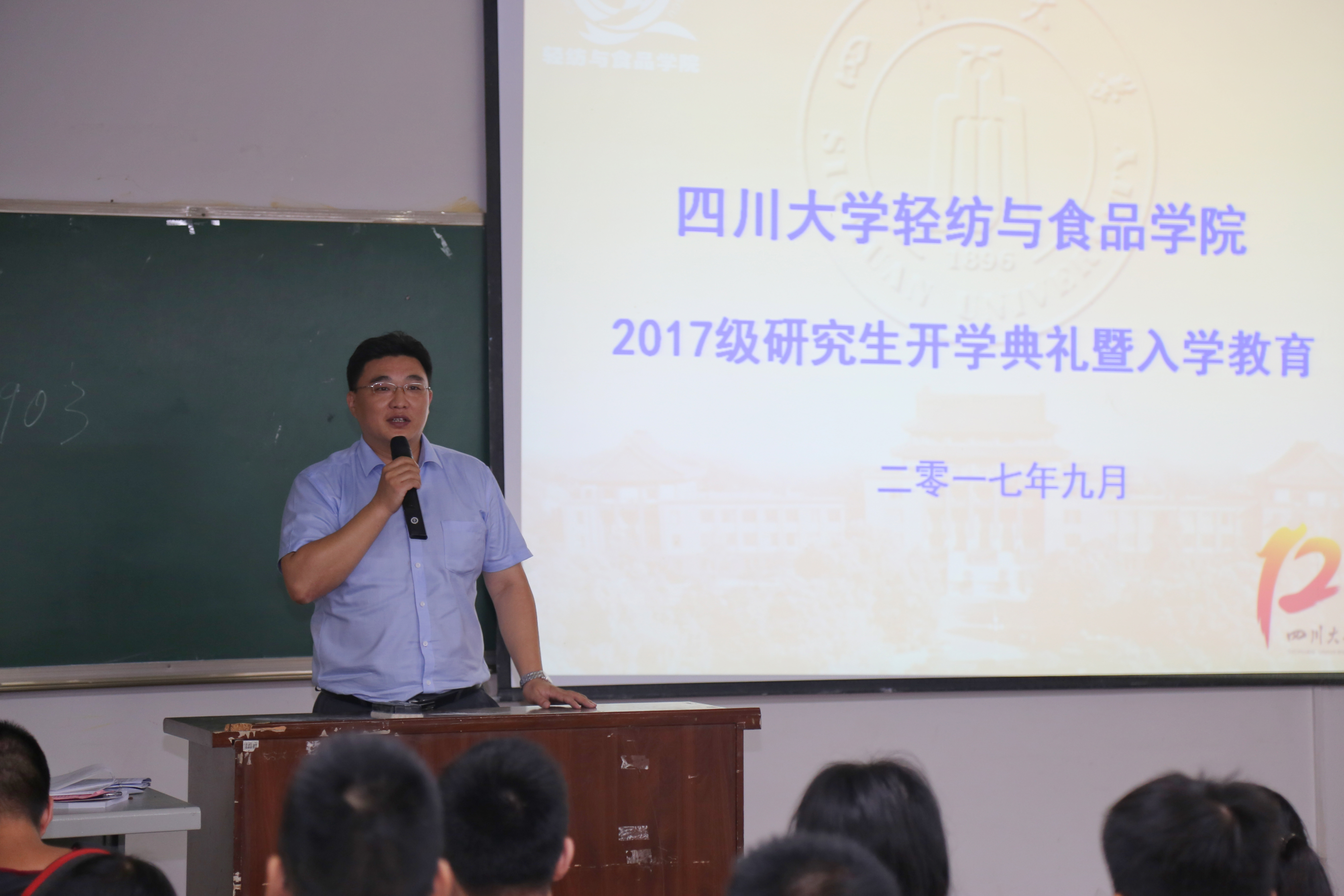随后,何有节院长从四川大学的发展历史,轻纺与食品学院的学科设置、师资队伍、人才培养、科学研究、对外交流及学生活动等方面进行了全面的介绍,让2017级研究生新生对学院有了更全面、深刻的认识,并为在这样的团队中学习感到自豪与骄傲。
