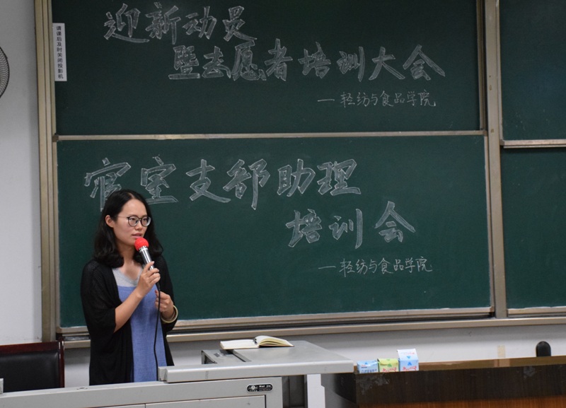 2015年9月9日晚7时,轻纺与食品学院2015年迎新动员暨志愿者培训会于四川大学江安校区综合楼C座105教室顺利举行。本次活动由轻纺与食品学院团委学生会主办,团委副书记、2014级辅导员李晓秀老师,团委副书记、2015级辅导员贺婷老师参加了本次大会。全体2014级迎新志愿者到场接受志愿工作培训。