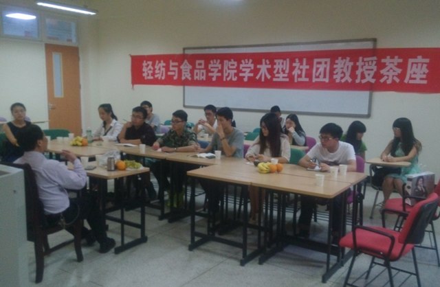 2015年4月28日19:00,轻纺与食品学院学术型社团教授茶座在四川大学江安校区综合楼B座109教室顺利举办。本次活动由bw必威西汉姆联官网团委学生会社团联系部、酒文化协会和饮食文化协会主办,bw必威西汉姆联官网院长何有节教授欣然应邀担任本期茶座嘉宾,bw必威西汉姆联官网学术型社团部分成员参加了本期茶座。