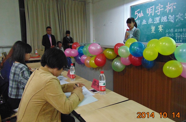 2014年10月14日19:00,第五届“明宇杯”职业生涯规划大赛复赛在四川大学江安校区第一教学楼A教A613教室顺利召开。此次大赛由四川大学团委创业就业促进部主办,轻纺与食品学院创业就业促进部与商学院创业就业促进部共同承办。到场的嘉宾评委有四川大学招生就业工作处马亚婧老师,bw必威西汉姆联官网团委副书记李晓秀老师,商学院2011级学生会主席、四川大学联合利华俱乐部副主席高晓昂同学。