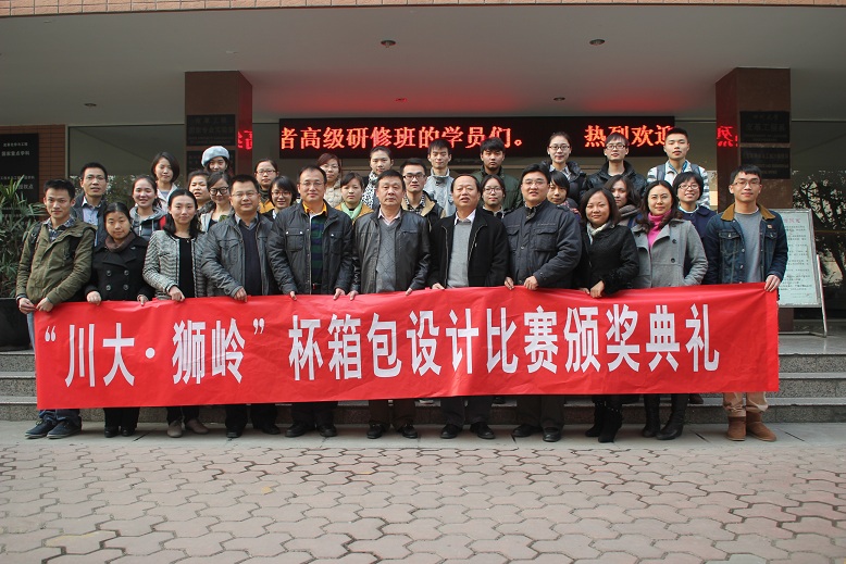 颁奖典礼开始前,何有节院长致辞。他首先代表学院党委、行政对广州市花都区各位领导受邀出席本次颁奖典礼表示热烈欢迎,并对狮岭镇长期以来对我校革制品方向的教育教学、人才培养、科研合作等领域的关心与支持表示衷心感谢。何院长全面介绍了狮岭镇与我校的合作项目,尤其是在学生实习实践、设计比赛方面给予了很多指导与帮助,为学生提供了良好的发展平台。其次,赵东辉副局长代表广州市花都区讲话。赵局长首先对通过自己努力,经过严格评比,最后获奖的作品与同学表示祝贺,对四川大学在皮革行业革制品设计方向的人才培养作出的努力表示感谢。赵局长全面介绍了花都区的产业集群,尤其是狮岭镇皮革皮具城,它是集箱包的设计、生产、销售、运输为一体的产业集群优势,希望革制品设计方向的有志之士能到花都狮岭发展,为行业的发展作出更大的贡献。紧接着,刘晓虎副书记宣读了2013年度“川大•狮岭”杯箱包设计比赛的获奖名单,到场的各位领导与嘉宾为获奖同学一一颁奖。最后2010级革制品设计专业杨树怀同学作为获奖学生代表发言。颁奖典礼结束后,参会领导、嘉宾与全体获奖同学在皮革楼前合影留念。