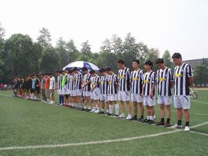 5月12日(周二)上午10:30,在东区篮球场,轻纺与食品学院和法学院参加了“阳光足球赛”。本次比赛是轻纺与食品学院的首场比赛,简单的入场式结束后,全体队员向汶川地震中遇难的同胞和解放军烈士们默哀三分钟。