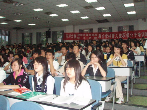 2008年4月18日晚19:00,四川大学轻纺与食品学院、经济学院联合党校暨入党积极分子培训班开学典礼在望江校区JC C201隆重举行。校党委组织部部长汪朝清教授、轻纺与食品学院党委刘晓虎副书记、经济学院党委陶宏副书记、经济学院学生科科长涂刚老师及各年级辅导员出席了本次开学典礼。典礼由轻纺与食品学院05级辅导员冯国涛老师主持。