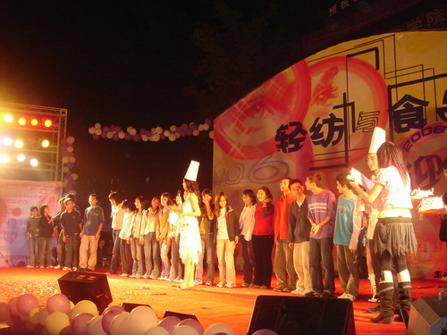 随着一曲欢快的音乐和动感十足的开场舞,轻纺与食品学院2006年度迎新晚会于11月12日晚7:00在青春广场正式拉开了序幕,整个青春广场顿时成了歌声与掌声的海洋。