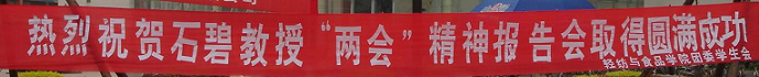 4月16日晚,由轻纺与食品学院团委、学生会主办的《创新与个人成才——石碧教授“两会”精神报告会》在水上报告厅拉开了帷幕。整个会场座无虚席,院党委副书记刘晓虎老师、院团委书记祝蔚老师、院团委副书记刘健西老师、冯国涛老师以及05级辅导员李慧老师、院团委、学生会全体干部、04、05级全体同学以及部分兄弟学院特邀嘉宾出席了此次报告会。