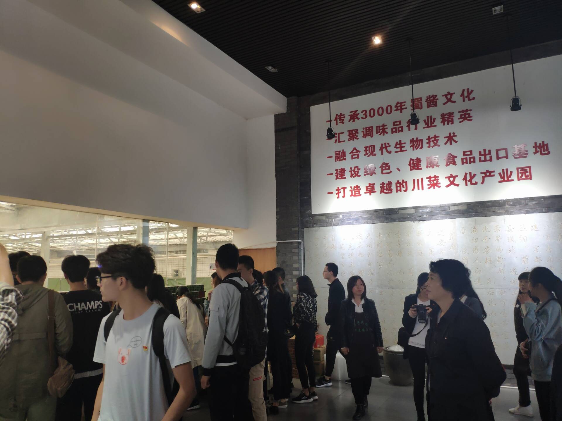 在战旗村考察学习中,同学们以专业为导向,重点考察了战旗村“乡村十八坊”的食品加工业和纺织蜀绣工艺。党的十八大以来,在以习近平同志为核心的党中央领导下,战旗村盘活集体经济,推动集体经济发展的市场化、专业化。农民脚下的土地开始释放出改革的红利。党的十九大提出实施乡村振兴战略,进一步加快了农村发展、改善了农民生活、推动了城乡一体化的重大战略。战旗村把发展现代农业作为实施乡村振兴战略的重中之重,把生活富裕作为实施乡村振兴战略的中心任务,扎扎实实地贯彻落实乡村振兴战略。作为新农村建设的代表,战旗村深刻地向同学展示了坚持“不忘初心,牢记使命”,听党话跟党走的重要性。