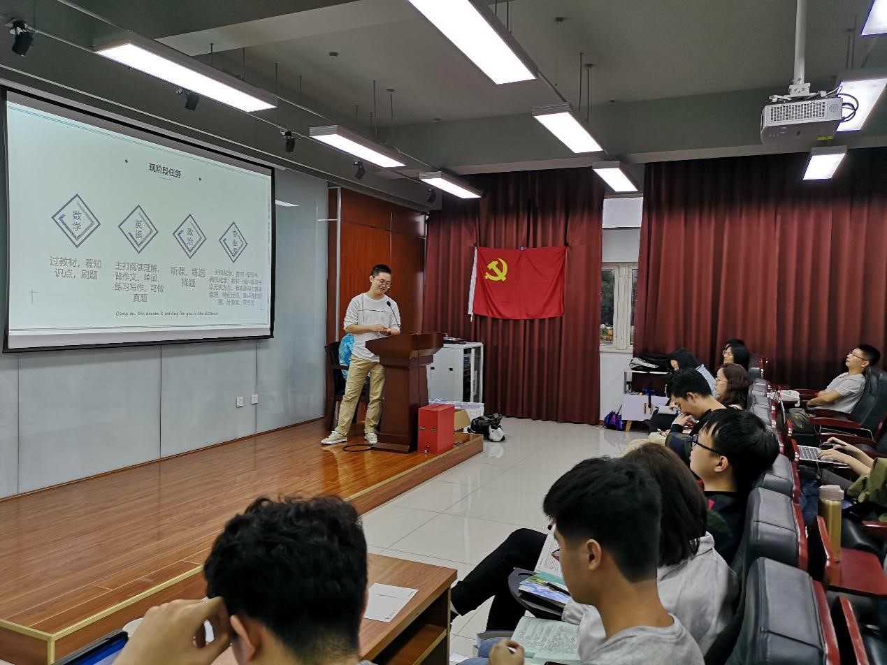 “考研小导师”任志军学长根据自己对考研情况的深入了解,对2021年的考研形势进行了分析,尤其是在疫情背景下,研究生报考人数将可能会持续增加,考研竞争进一步增大,并鼓励大家唯有做好充分的复习准备,才能在考研群体中脱颖而出。在备考方面,他建议同学们寻找研友,以组队的形式进行考验准备,这样的形式有助于信息共享。然后帮助同学们熟悉考试流程,包括考前报名、初试复试准备及之后的注意事项,还结合自己的考研经历,帮助同学们树立考研信心、调整备考心态。