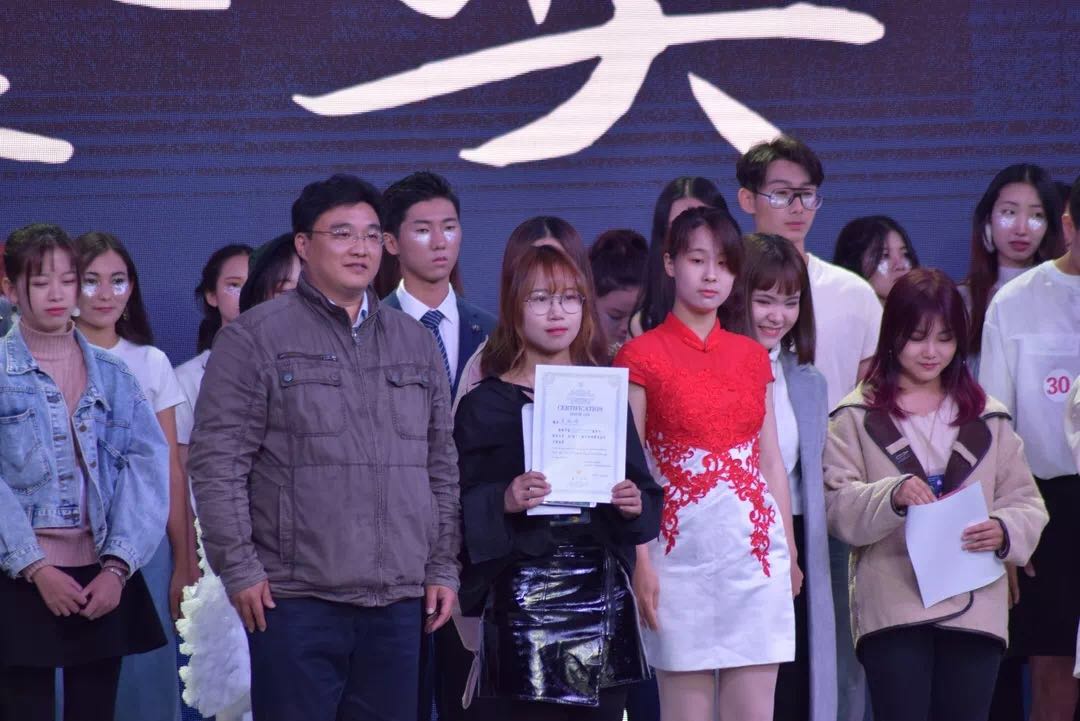 模特大赛颁奖典礼 何有节院长为金奖获得者胡锐彦颁奖