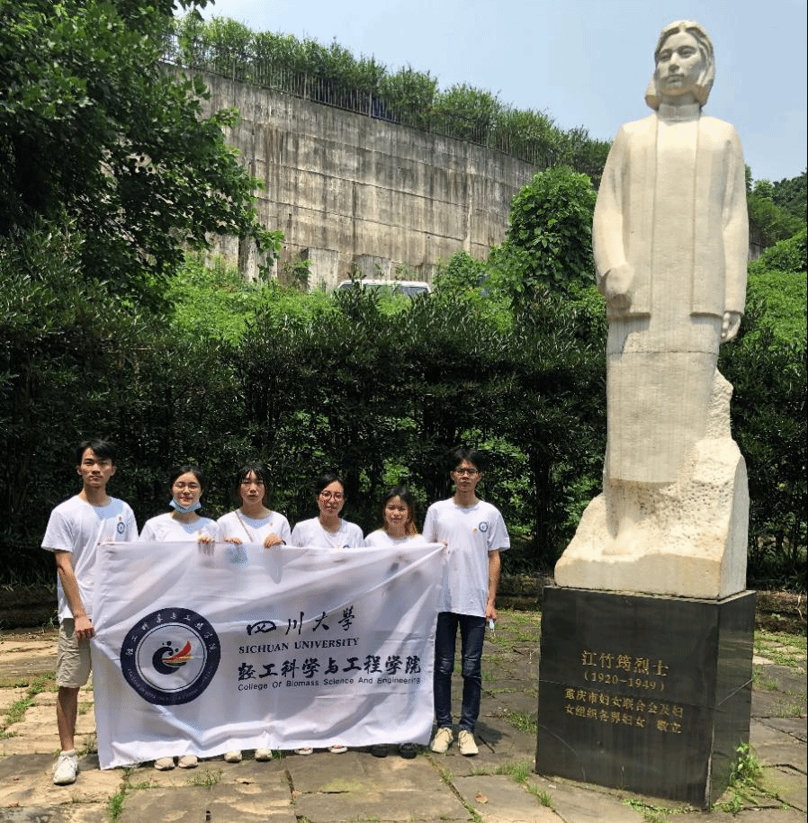 图3 实践团成员在“江竹筠烈士”雕像旁合影