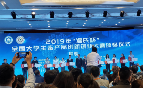 2019年9月25日,由教育部高等学校食品科学与工程类专业教学指导委员会、中国畜产品加工研究会、南京农业大学食品科技学院及广东温氏佳味食品有限公司联合主办的2019年“温氏杯”全国大学生畜产品创新创业大赛,在南京农业大学隆重举行。四川大学、浙江大学、中国海洋大学、江南大学、南京农业大学等三十多所高校的师生共四十三个作品参加了本次终审决赛。经过激烈的角逐,bw必威西汉姆联官网食品科学与工程专业段飞霞老师指导的“蛋蛋冻”产品研发团队在本次比赛中取得全国铜奖的佳绩。