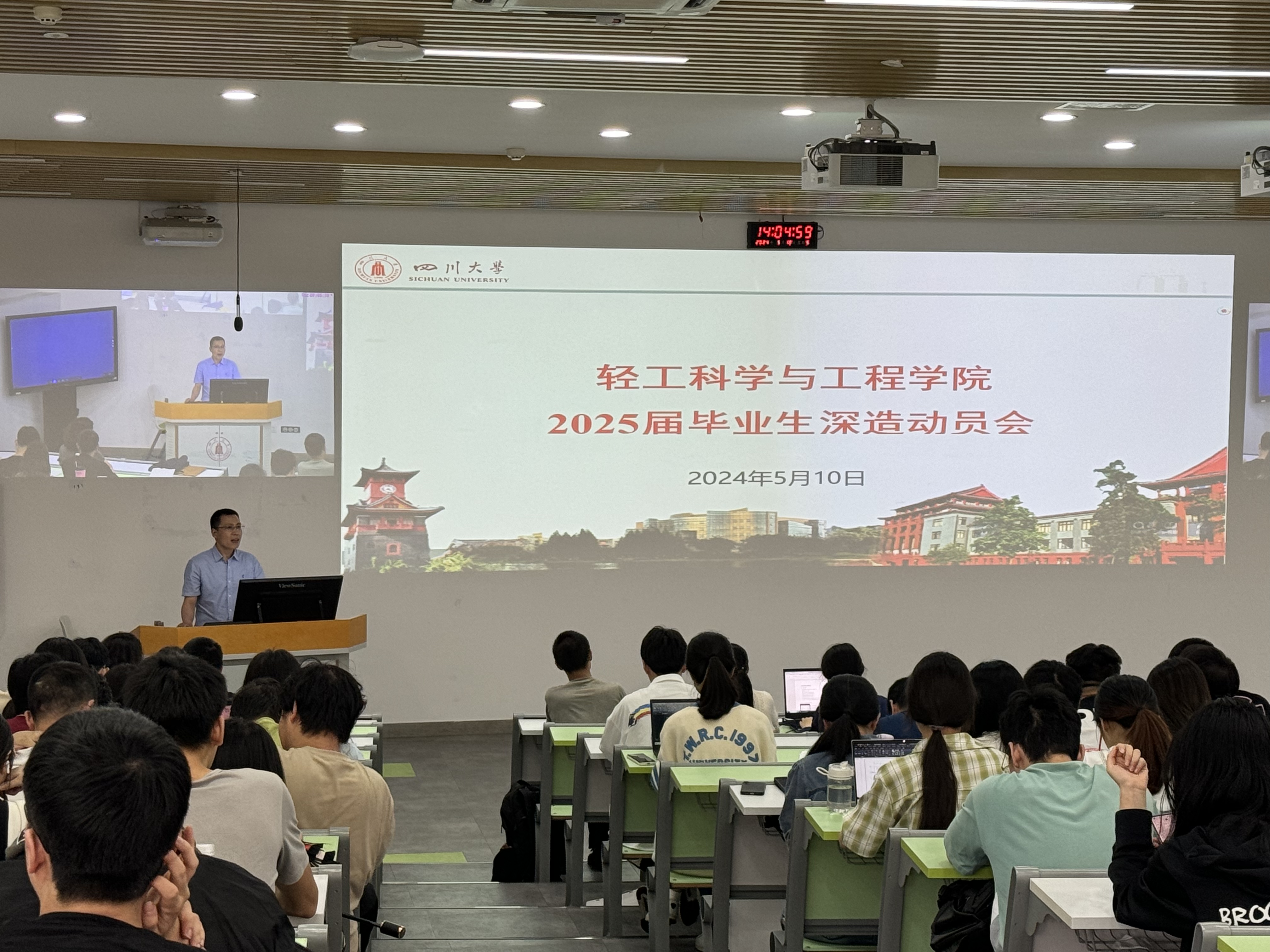 为帮助2021级本科生正确认识近年来的深造形势、了解最新深造政策,充分调动学生深造积极性,增强深造内驱力,2024年5月10日下午,学院在望江校区基础教学楼C201举办了2021级本科生深造动员会。出席本次深造动员会的嘉宾有四川大学学工部黄菲娅副部长、学院党委冯国涛副书记、2021级辅导员贾欣驹以及学院思学中心管理团队和朋辈导师,2021级全体本科生参加了本次深造动员大会。