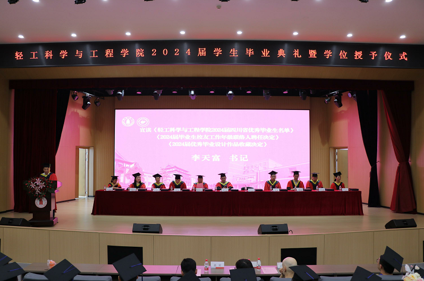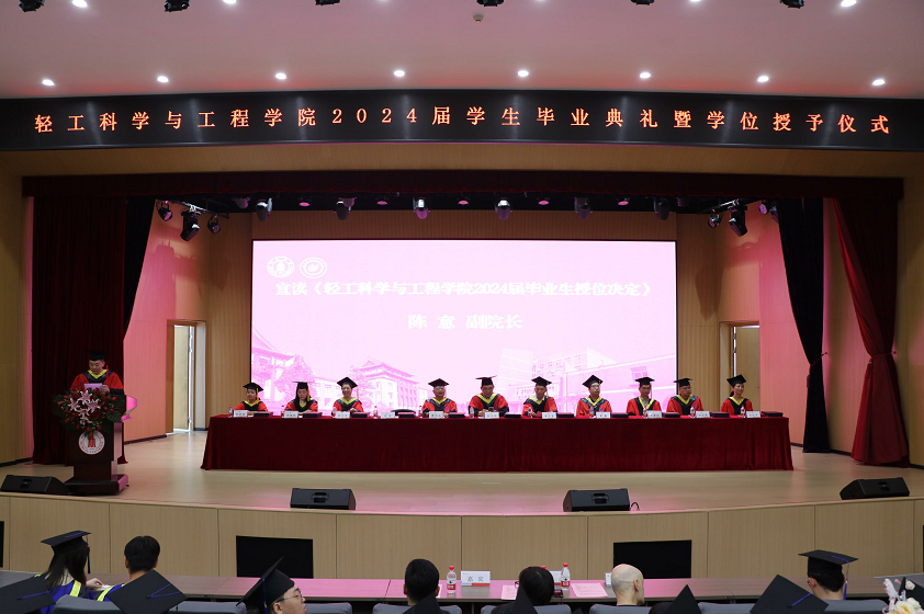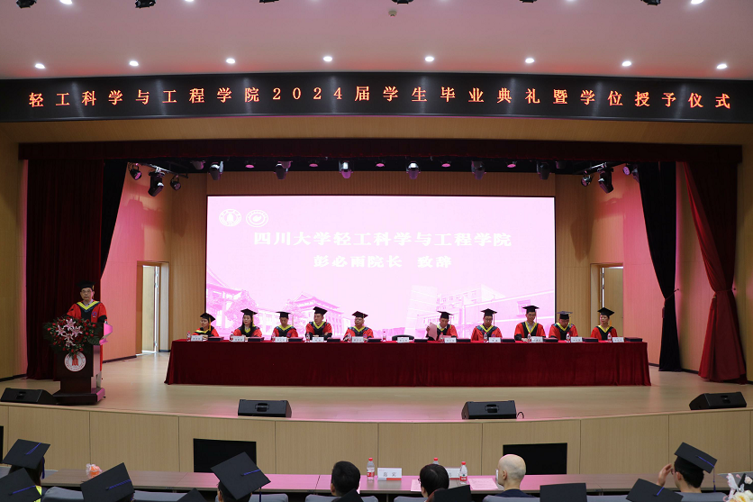 彭必雨院长代表学院党政致辞。首先,彭院长向2024届圆满完成学业,获得学士、硕士、博士学位的同学表示最热烈的祝贺!其次,彭院长一起回忆了2024届同学们与轻工学院一起成长的点点滴滴,并介绍了学院近几年在人才培养方面的成效。再次,彭必雨院长对2024届毕业生提出三点希望:一是希望同学们志存高远、砥砺奋进;二是希望同学们要终生学习,勇于探索;三是希望同学们要健康乐观,担当有爱。用大学四年所学知识报效祖国,用收获回馈社会,用练就的坚强意志肩负起时代重任。最后,彭必雨院长也衷心祝愿全体毕业生,在人生新的征途中,找准定位,抓住机遇,在新的人生征程中创造出无愧于时代的辉煌业绩!