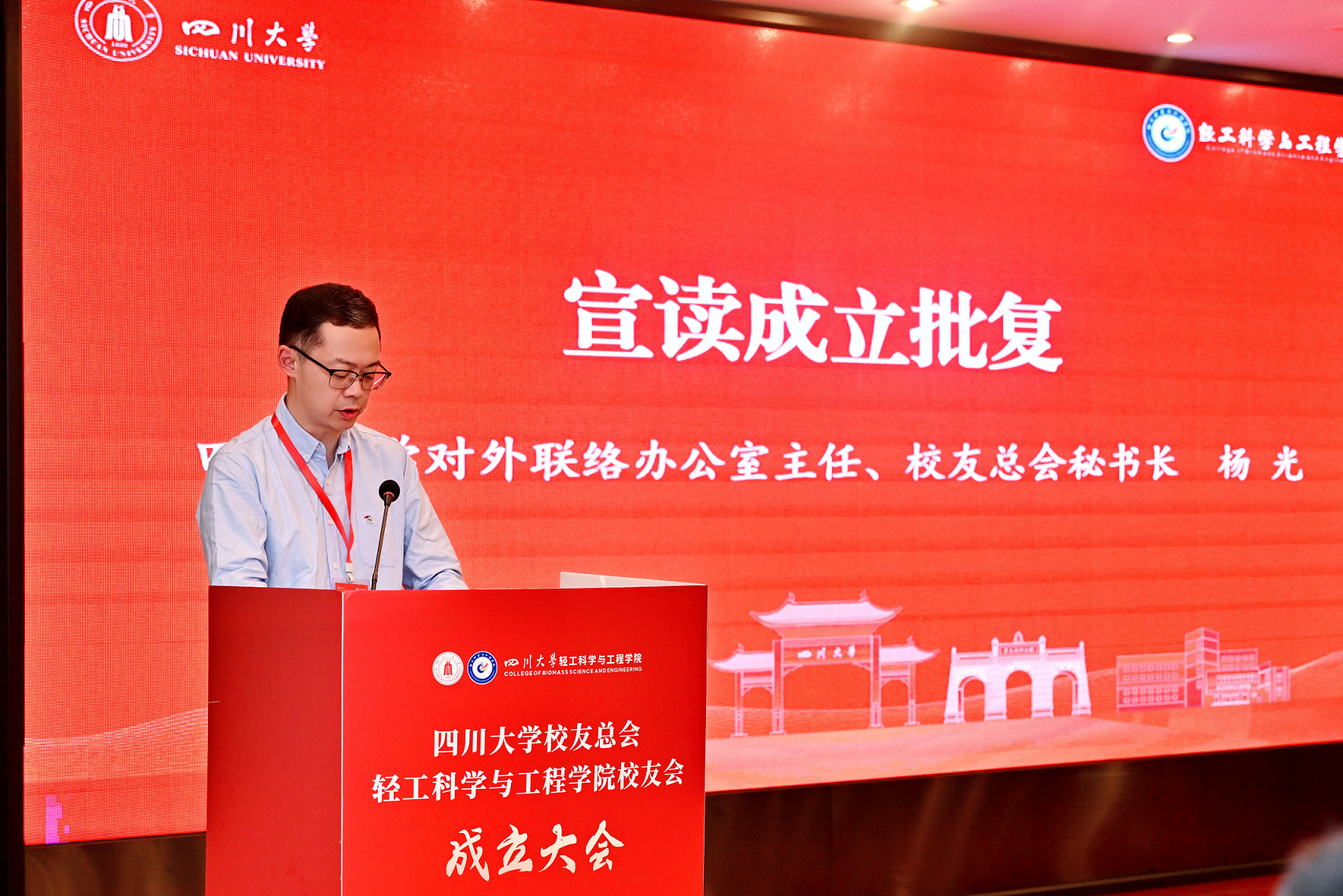 学校对外联络办公室主任、校友总会秘书长杨光宣读《四川大学校友总会关于同意成立bw必威西汉姆联官网校友会的批复》及学院校友会理事会名单,并举行理事会成员聘书授予仪式。