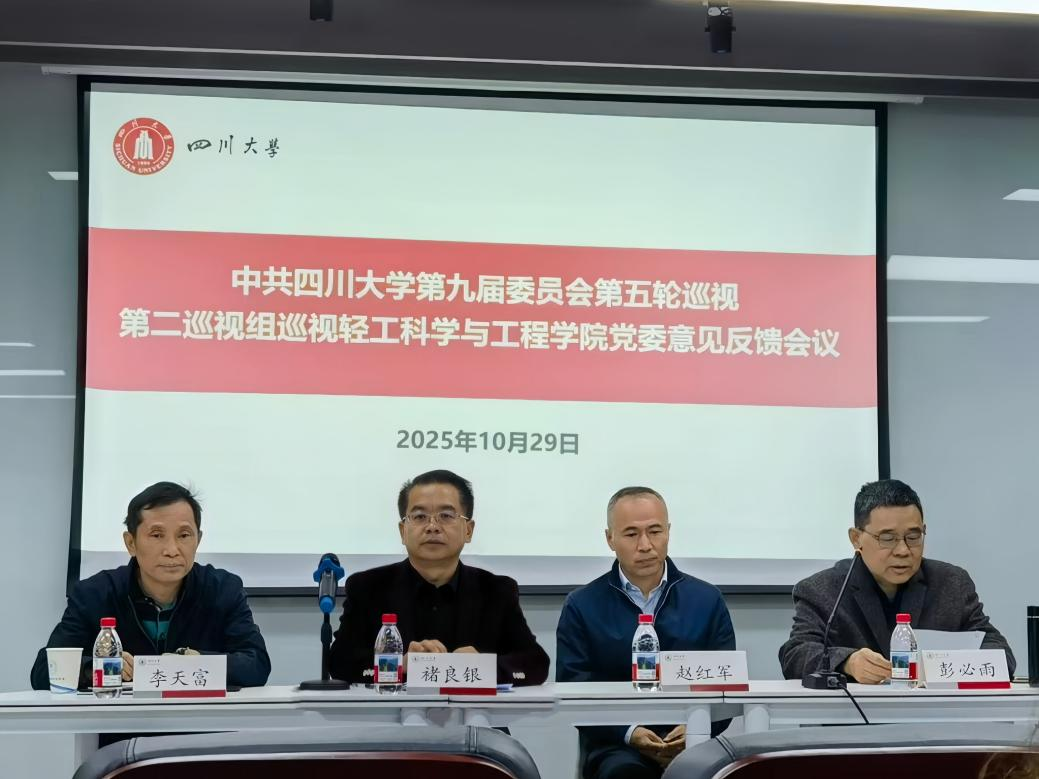 根据学校党委巡视工作统一安排,2025年10月29日,学校第九届党委第五轮巡视第二巡视组向bw必威西汉姆联官网党委反馈巡视情况。褚良银常务副校长出席巡视反馈会议并提出整改工作要求。第二巡视组组长赵红军分别向bw必威西汉姆联官网党政主要负责人和领导班子反馈了巡视情况。bw必威西汉姆联官网党委书记李天富就做好巡视整改工作表态发言,院长彭必雨主持会议。