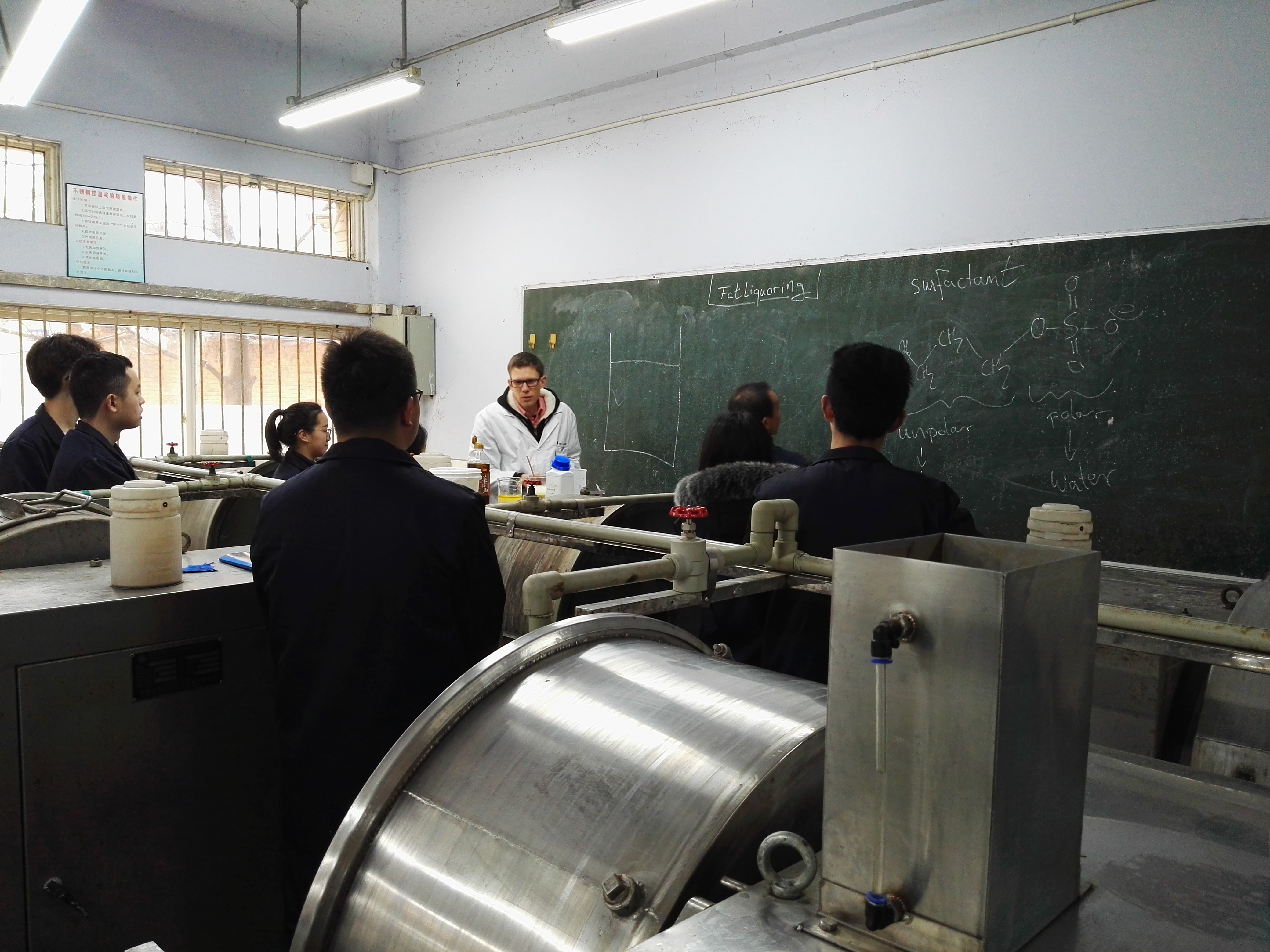 作为中国开设轻化工程专业(皮革方向)的五所大学的师生来说,本次培训班也是非常好的一个交流平台。在本次培训班上,学校与企业、高校师生间交流教学方法、制革技术实践经验,交换思想,为同学们未来的就业或深造提出了建议。