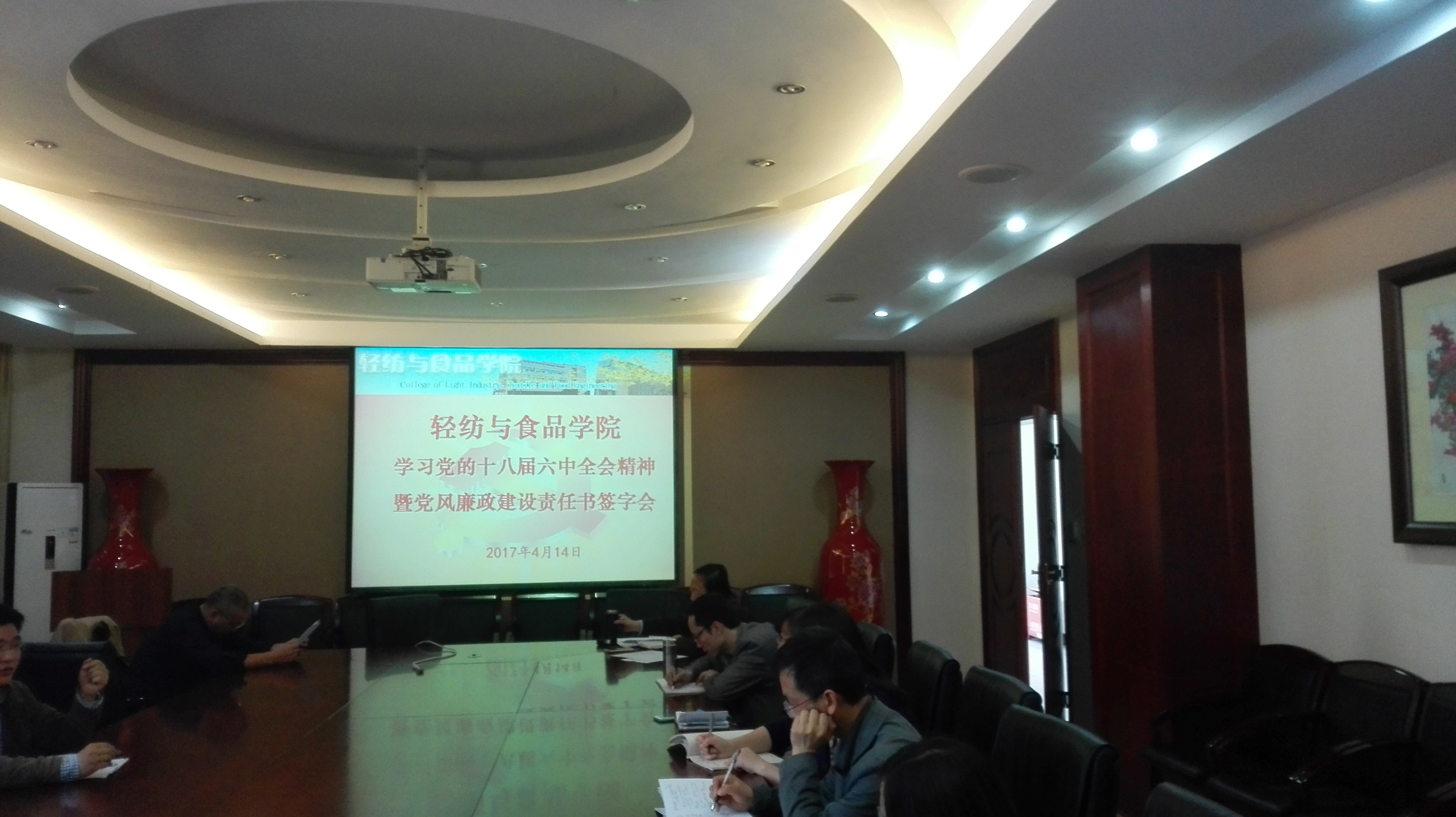 4月14日下午,bw必威西汉姆联官网在皮革楼209会议室举行学习十八届六中全会精神暨党风廉政建设责任书的签署大会。参加此次会议的有学院中层领导干部,党委委员、纪委委员,工会主席,科级干部,系所负责人,教职工党支部书记及支委,学生党支部书记及支委。会议由学院副书记兼纪委书记刘晓虎同志主持。赵毅书记就十八届六中全会精神进行了深入的解读,分别从此次会议的主题及议程,核心的确立,加强和规范党内的政治生活,加强党内监督条例四个方面做了重点阐述,让与会人员对十八届六中全会精神有了一个比较全面而深入的认识。在赵书记的讲课之后,由刘书记主持,学院中层领导干部、系主任、教职工党支部书记、科级干部分批签署了党风廉政建设责任书。