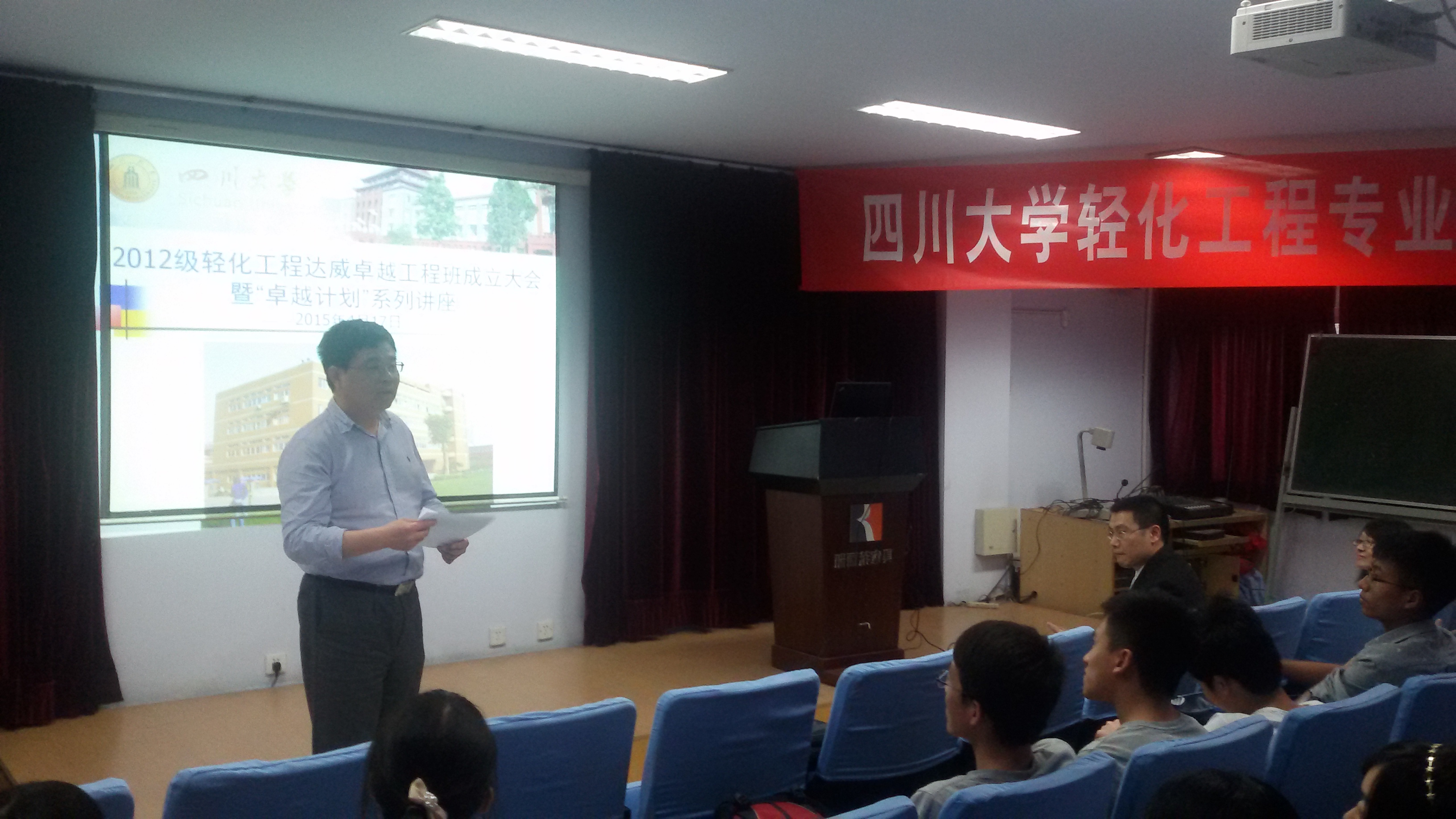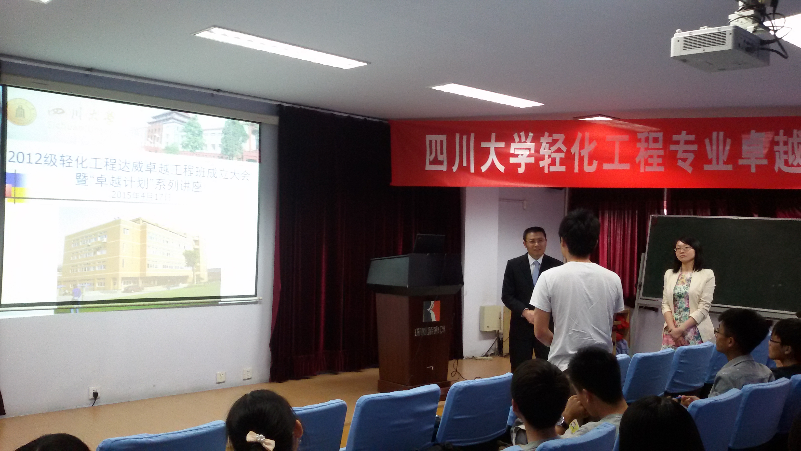 2015年4月17日下午,四川大学轻纺与食品学院生物质与皮革工程系“2012级轻化工程专业达威卓越工程师班”成立大会在四川大学皮革楼报告厅隆重举行.